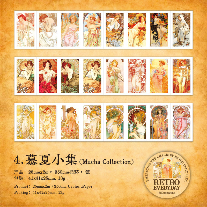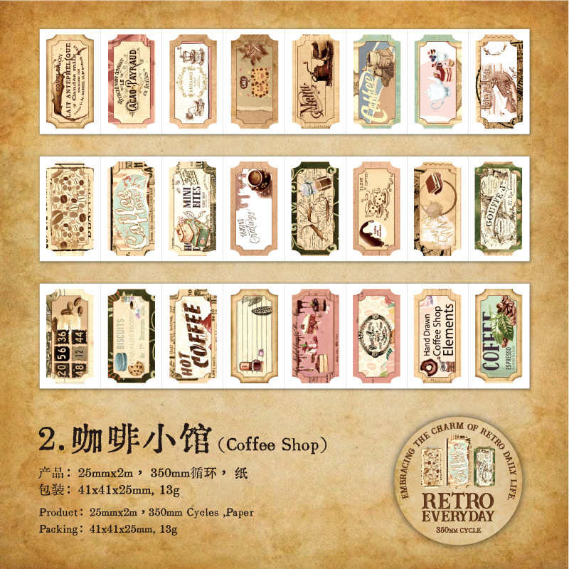 Yanji 미니 노트 테이프 레트로 데일리 시리즈 레트로 크리에이티브 라벨 테이프 다이 컷 핸드북 인 콜라주스토어 가기
