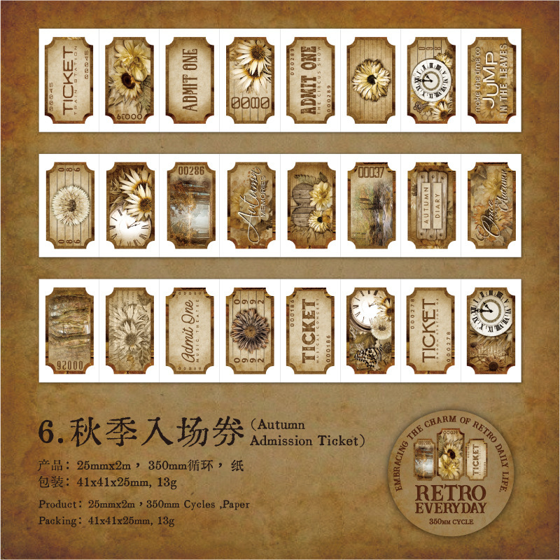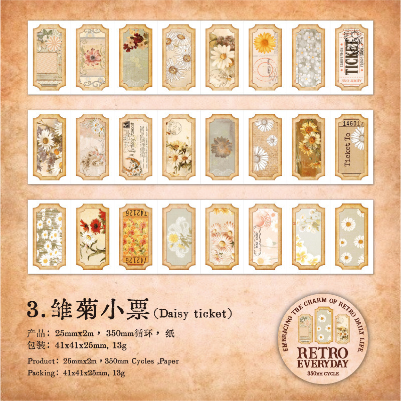 Yanji 미니 노트 테이프 레트로 데일리 시리즈 레트로 크리에이티브 라벨 테이프 다이 컷 핸드북 인 콜라주