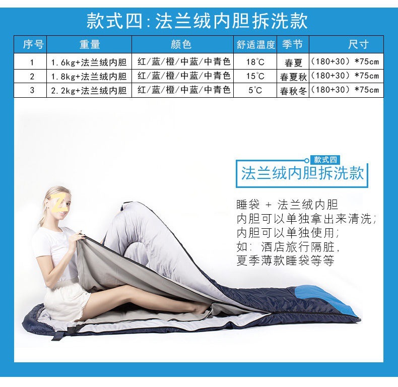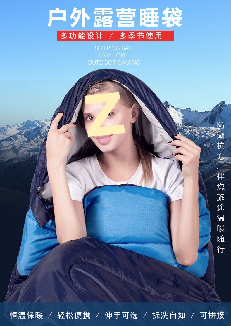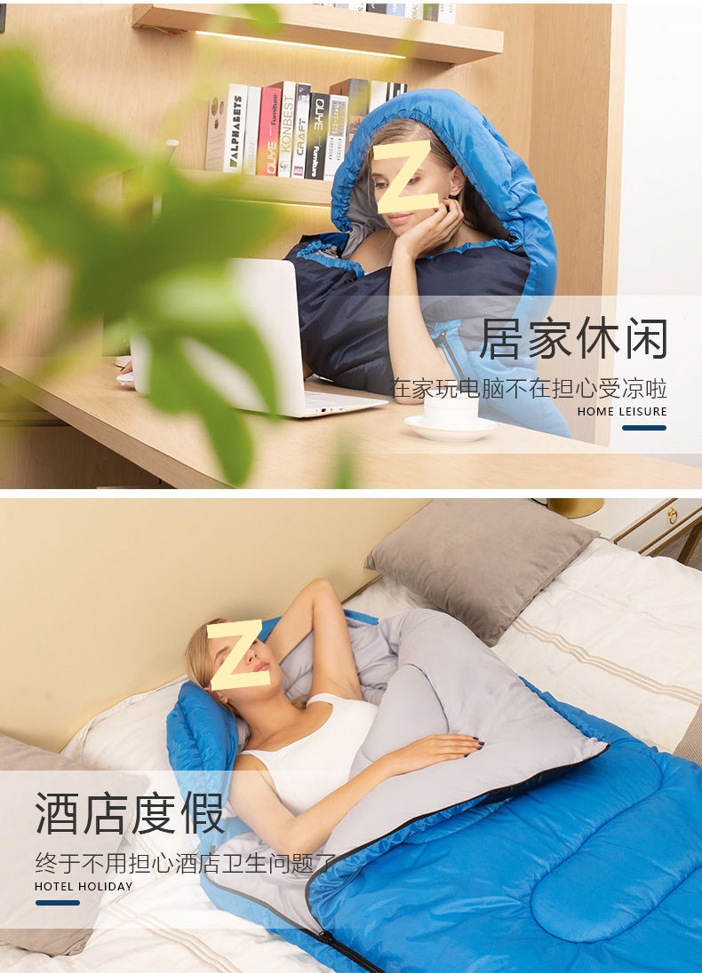 성인용 침낭 야외 캠핑 겨울 두꺼운 방한 남성 여행 먼지 방지 성인 싱글 및 더블 이불 실내 점심 시간스토어 가기