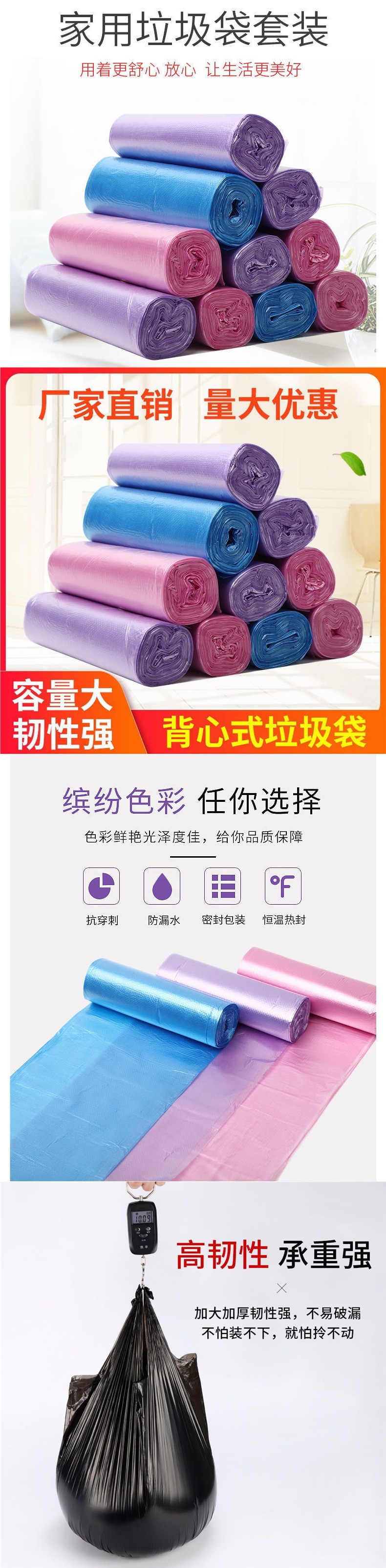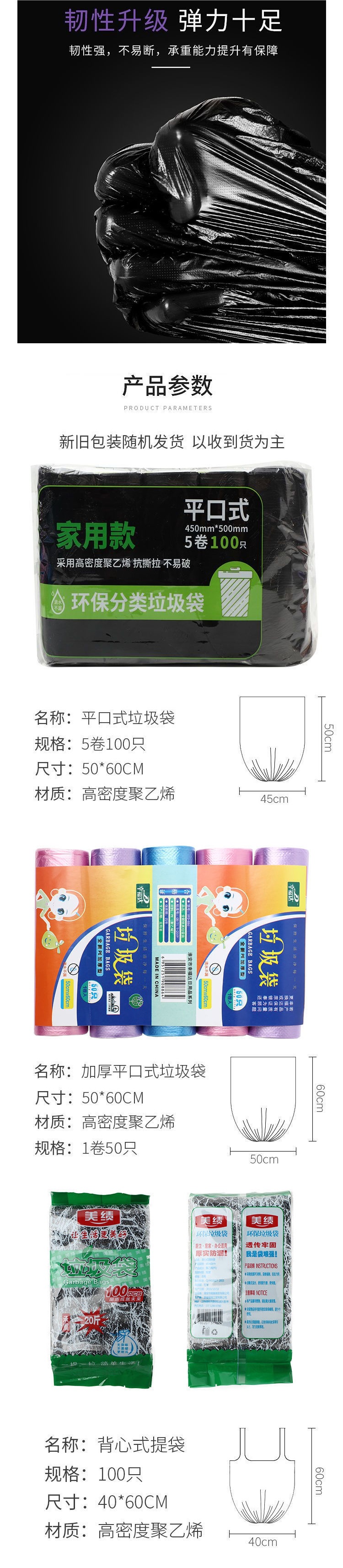 풀 박스 도매 플랫 입 휴대용 브레이크 포인트 유형 두꺼운 검정색 호텔 케이터링 주방 쓰레기 봉투