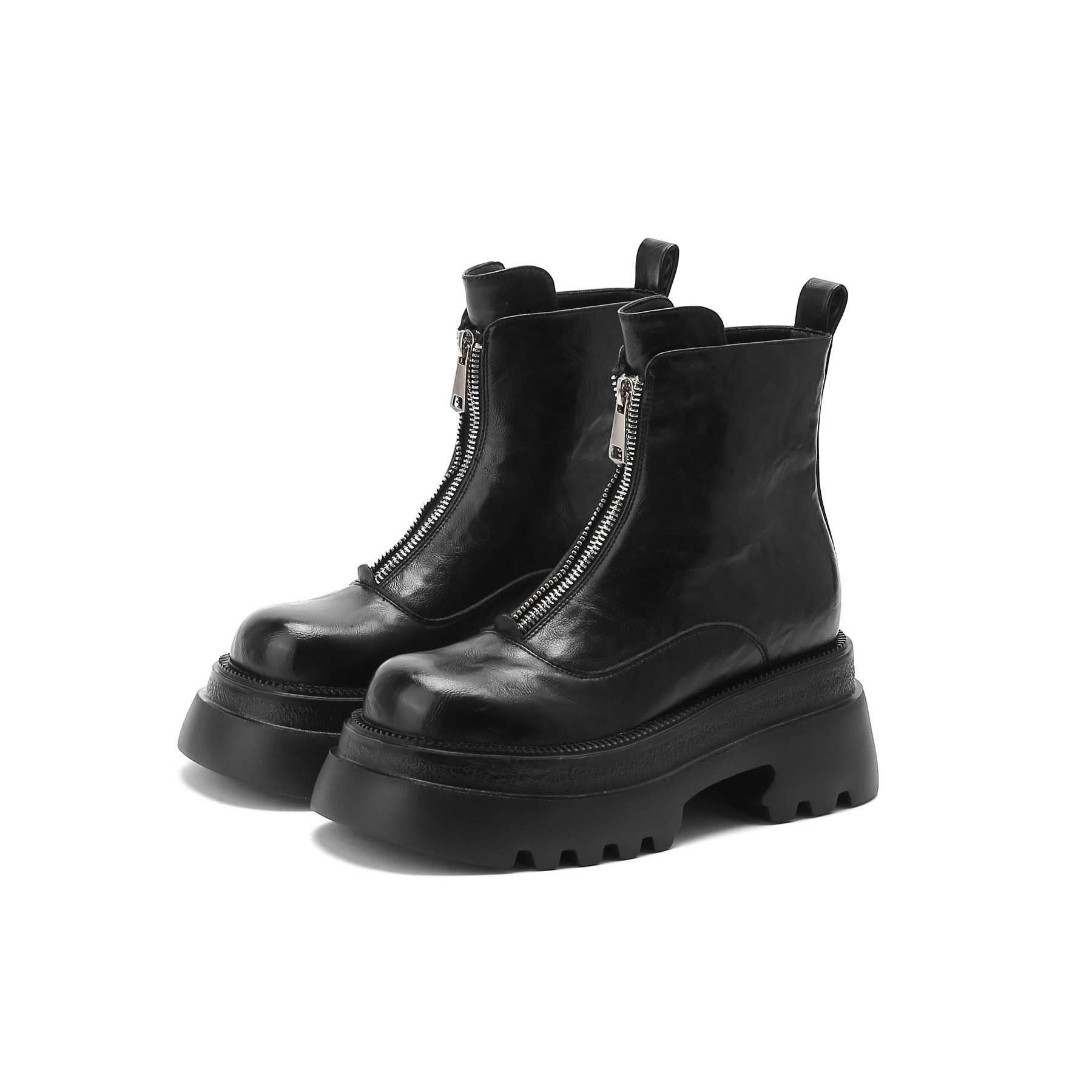 여성을위한 프랑스 복고풍 정품 가죽 짧은 부츠 2025 여성을위한 새로운 전면 더블 지퍼 마틴 부츠 작은 사람들을위한 키가 크고 슬림한 신발스토어 가기