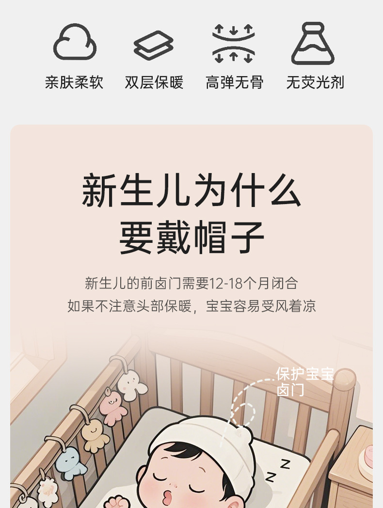 신생아 모자, 봄과 가을 스타일, 신생아 모자, 가을 면 이중 레이어 뼈없는 보호 모자스토어 가기