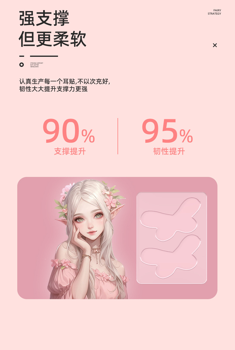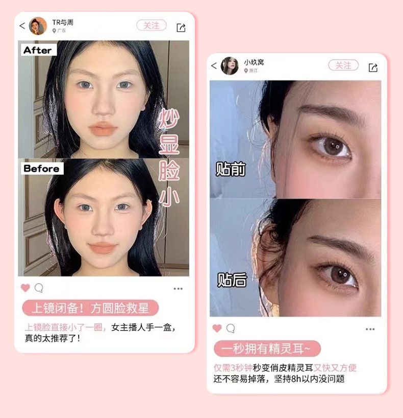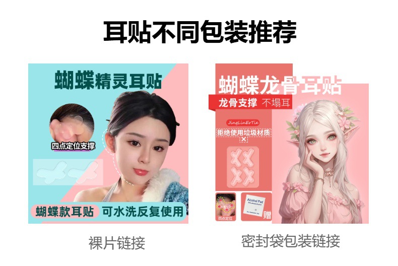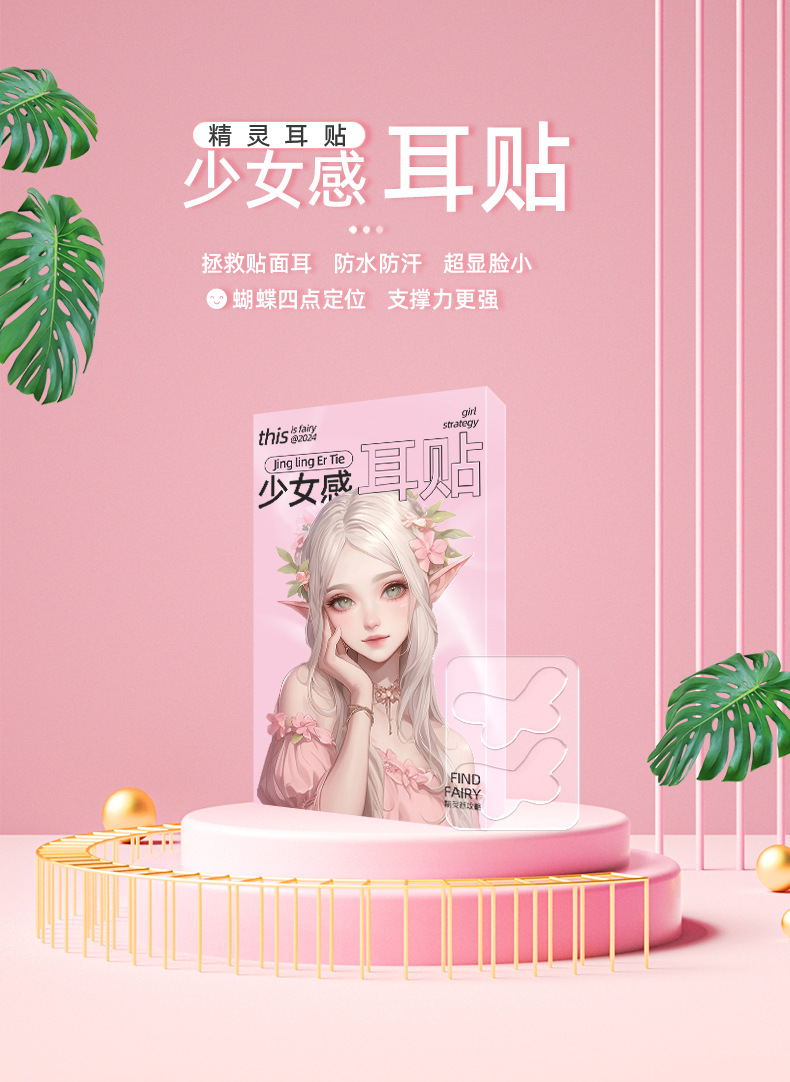 업그레이드된 박스형 나비형 엘프 귀패치, 소녀스러운 귀패치, 큰 얼굴을 작아보이게 하는 패치, 귀를 더 큰 귀로 변형