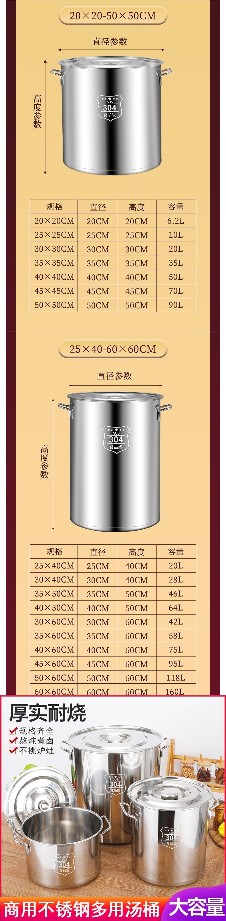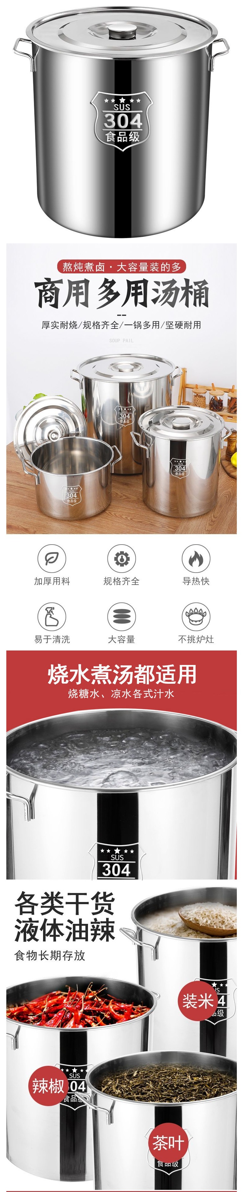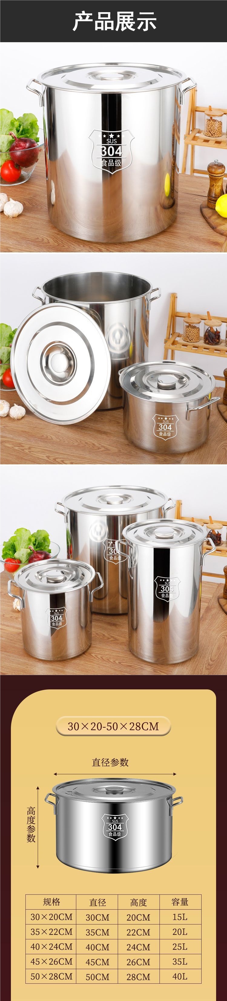 뚜껑이 있는 304 스테인레스 스틸 수프 냄비, 스튜 냄비, 가정용 스튜 냄비, 대용량 물 저장 수프 냄비