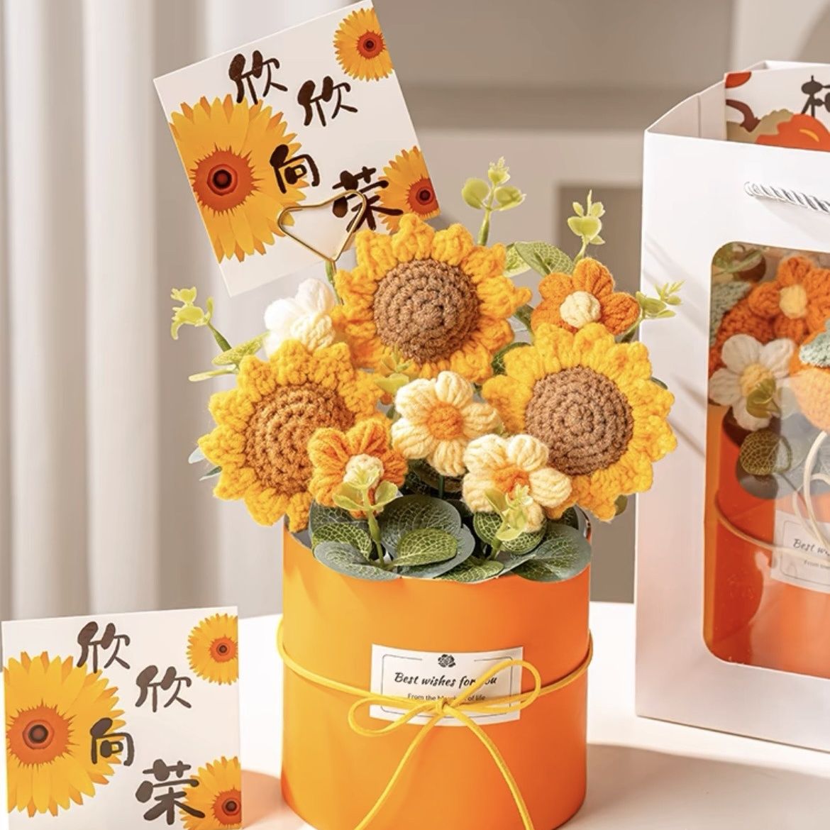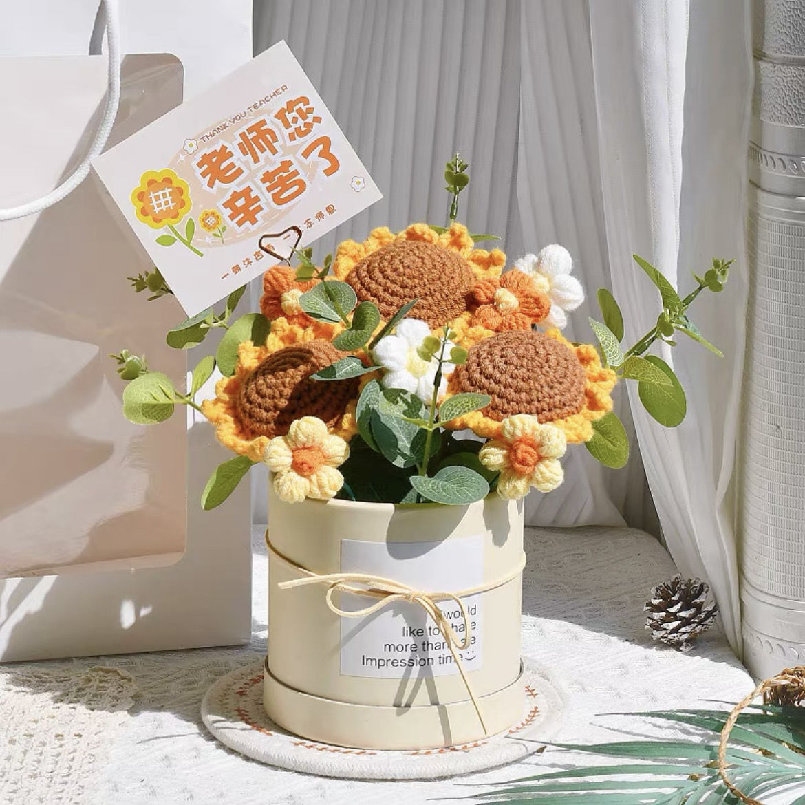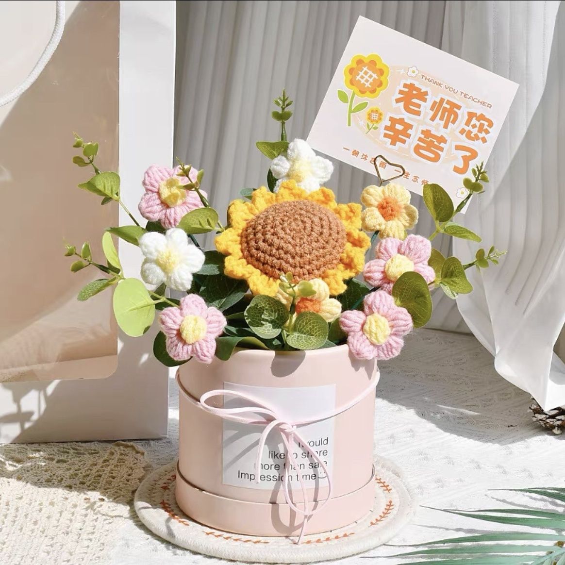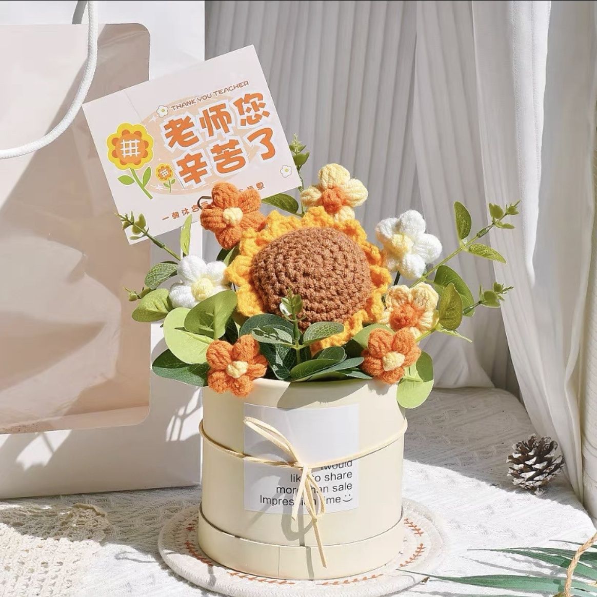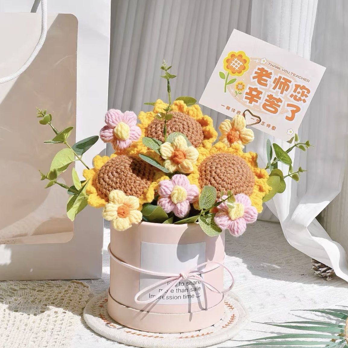 졸업 시즌 선물 교사 2025 생일 실용적인 장식품 양모 손으로 짠 가장 친한 친구 완제품 해바라기스토어 가기