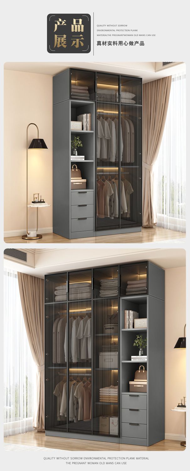 옷장 홈 침실 작은 아파트 옷장 간단한 현대적인 가벼운 고급 보관 캐비닛 임대실 유리 옷장스토어 가기