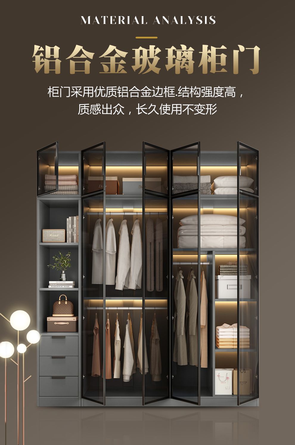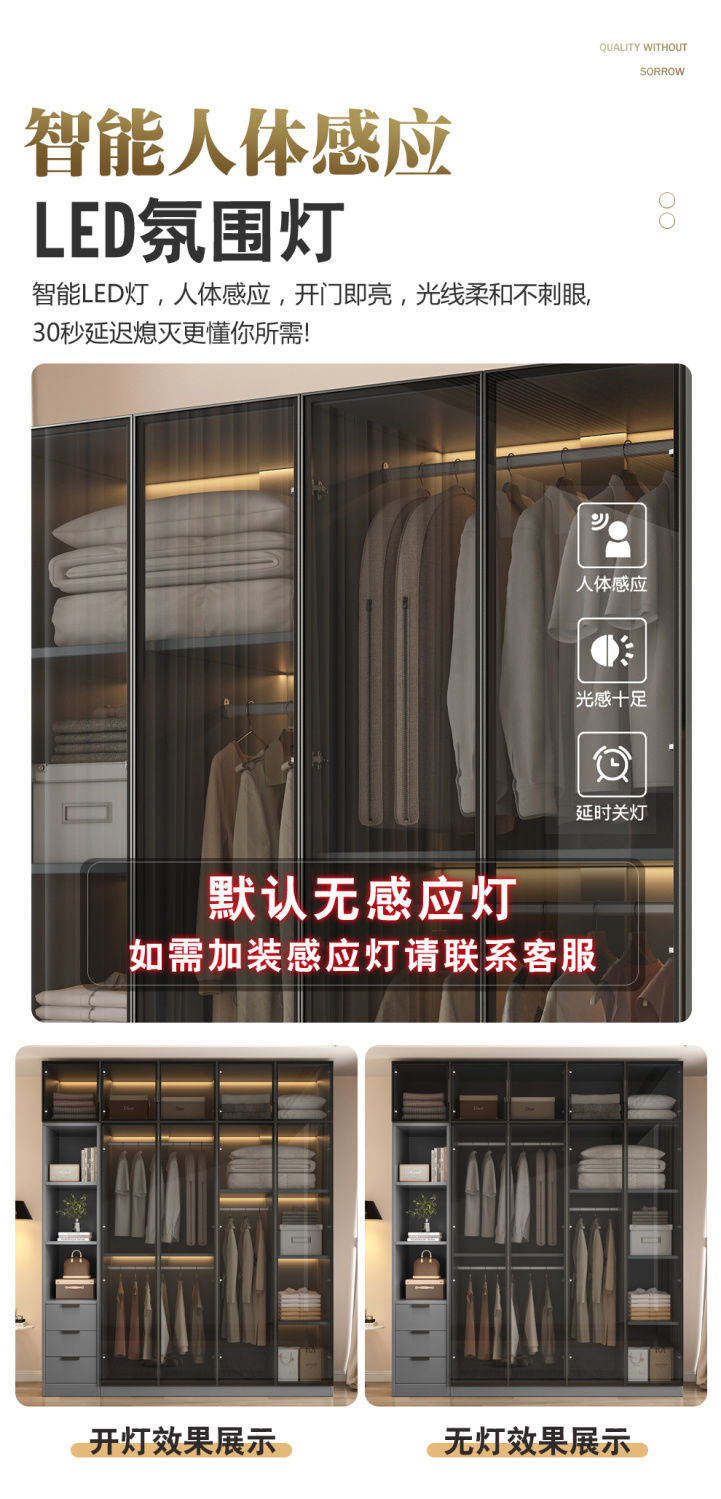 옷장 홈 침실 작은 아파트 옷장 간단한 현대적인 가벼운 고급 보관 캐비닛 임대실 유리 옷장