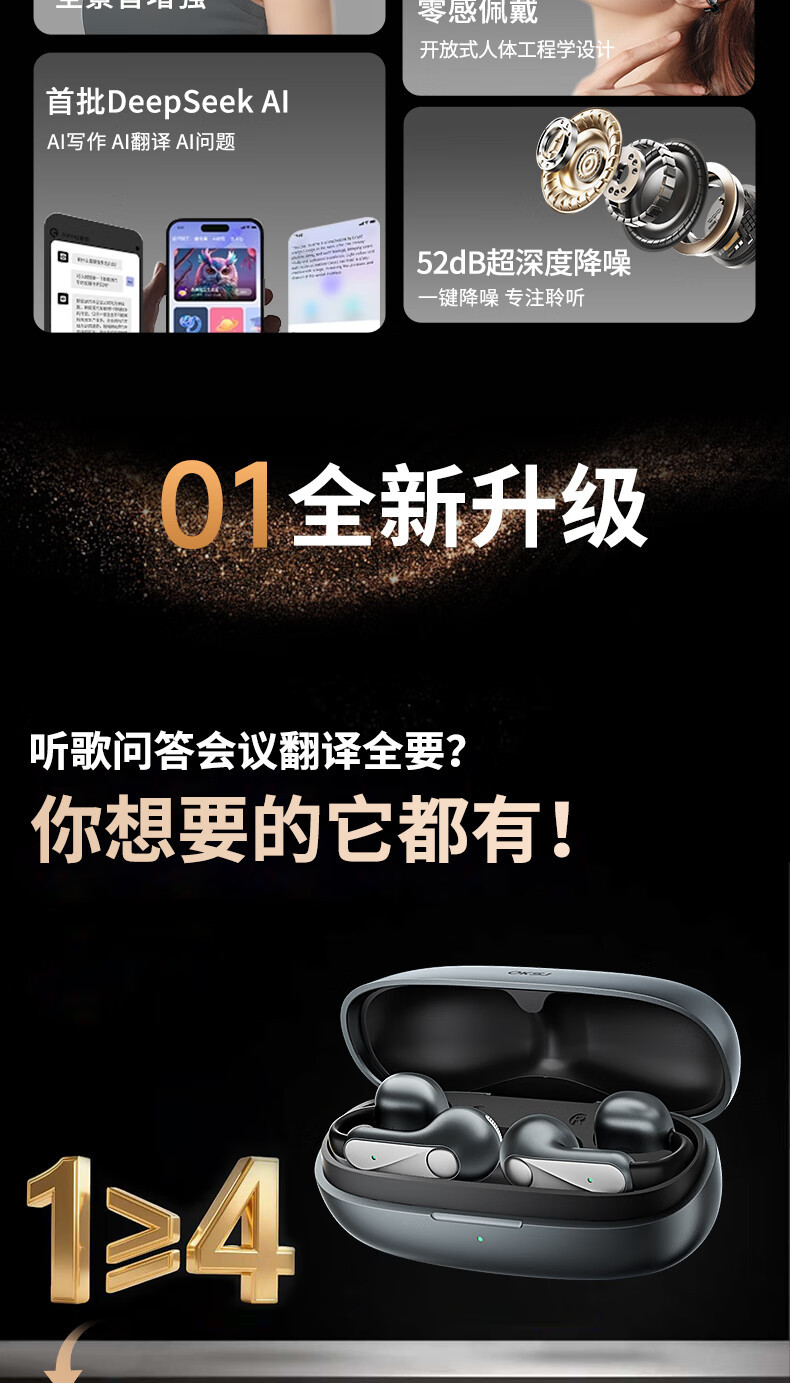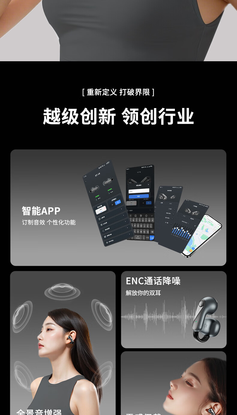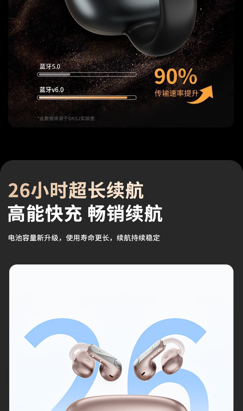 OKSJ [스마트 Ai 업그레이드 버전] 블루투스 헤드셋 이어 클립형 골전도 컨셉 무선 오픈형 러닝