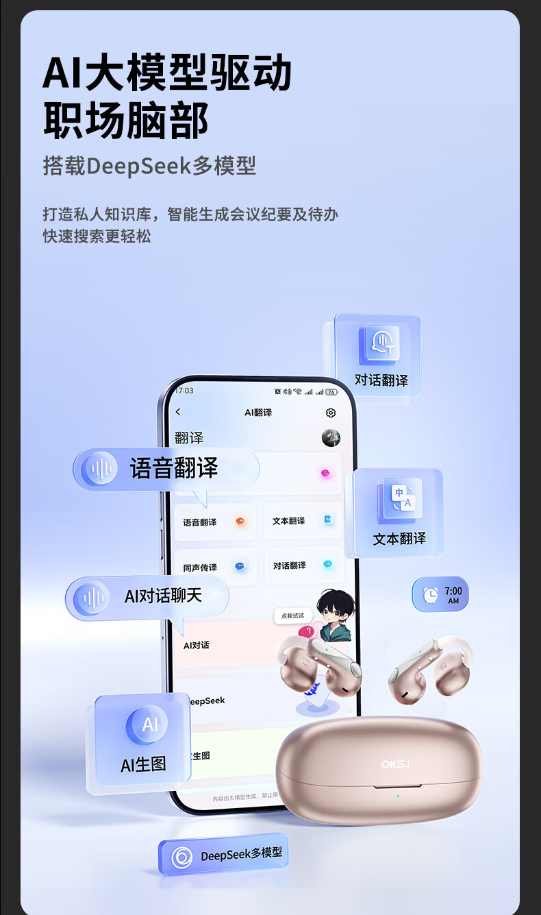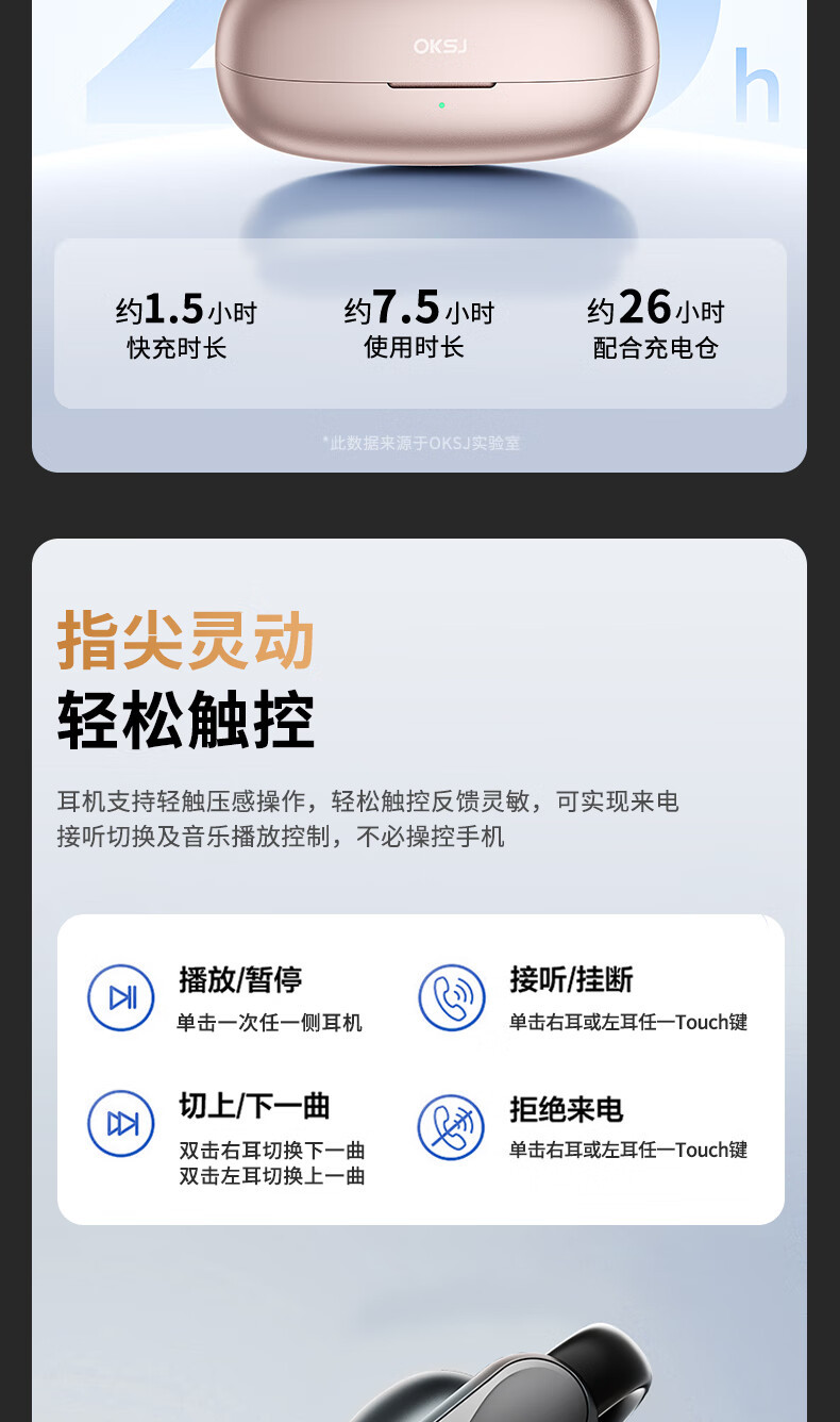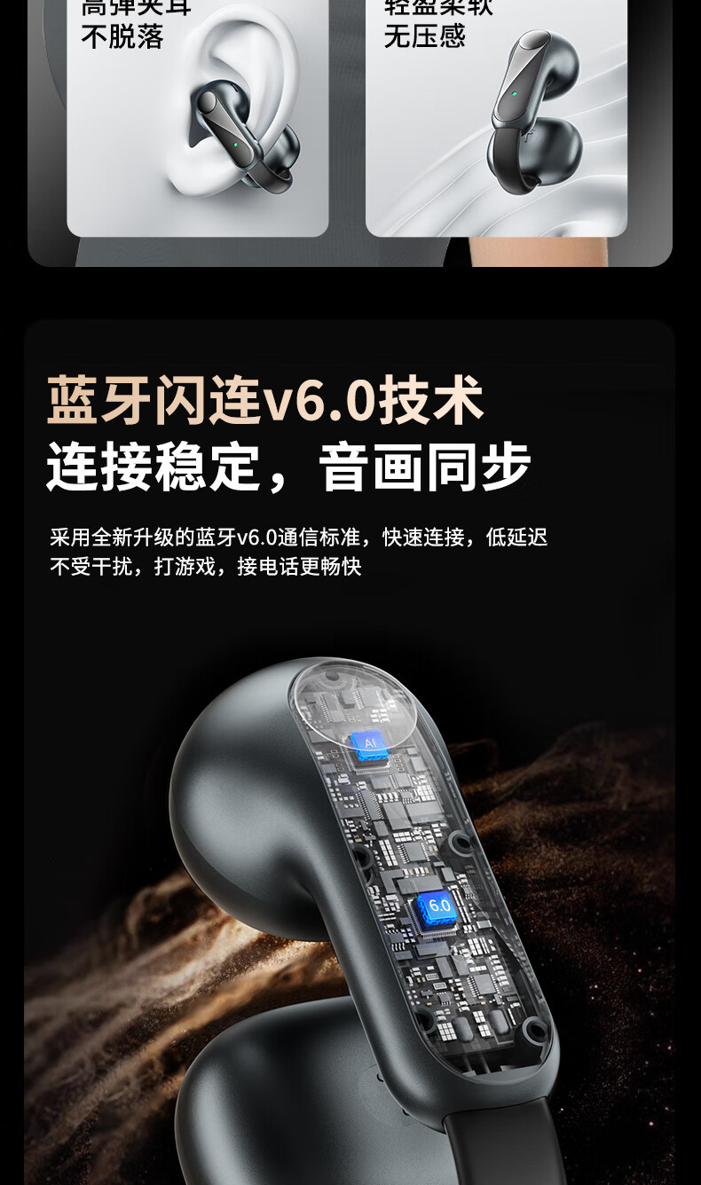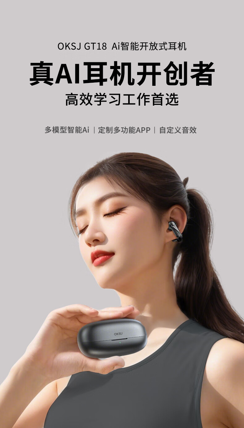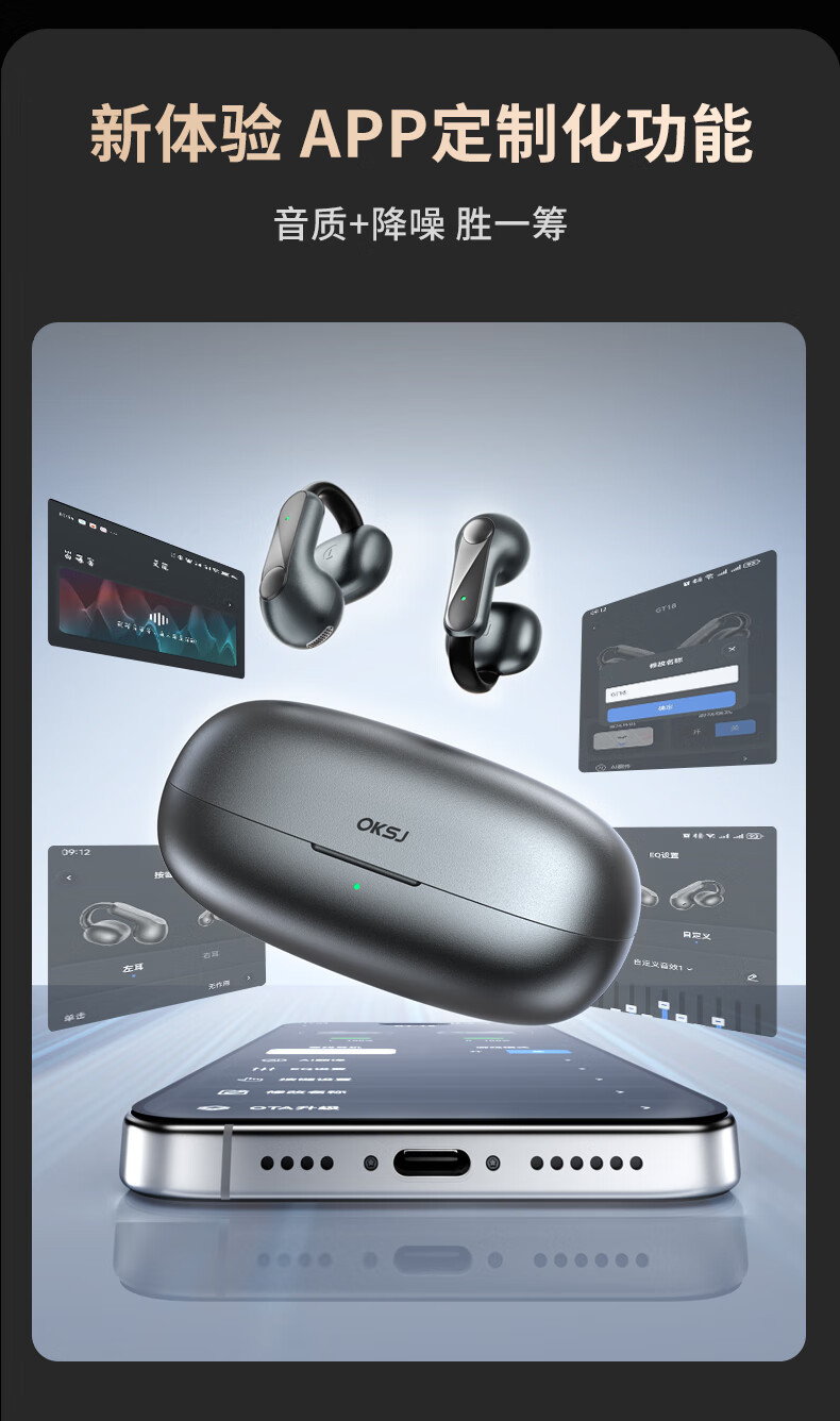 OKSJ [스마트 Ai 업그레이드 버전] 블루투스 헤드셋 이어 클립형 골전도 컨셉 무선 오픈형 러닝스토어 가기