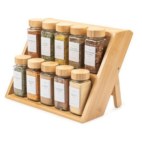나무 사다리형 주방 조미료 랙 수직 나무 조미료 조정 가능한 보관 랙 가정용 곡물 시리얼 디스펜서