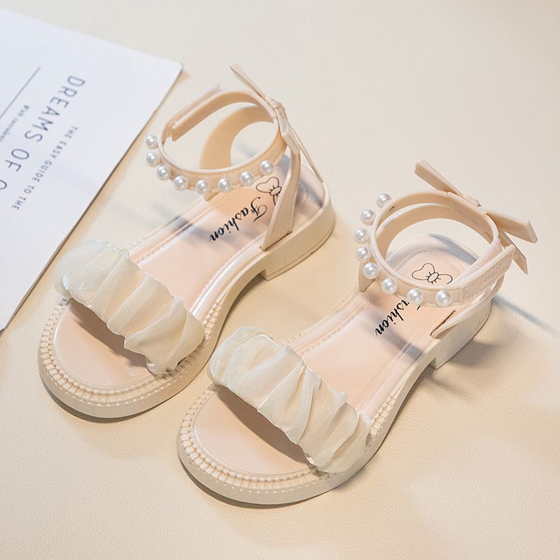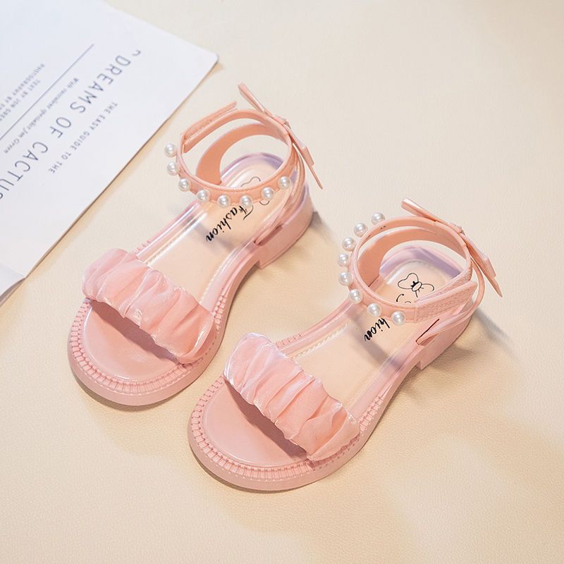 여자 샌들 2025 여름 새로운 스타일 중대형 어린이 유행 어린이 패션 공주 신발 하이힐 비치 신발