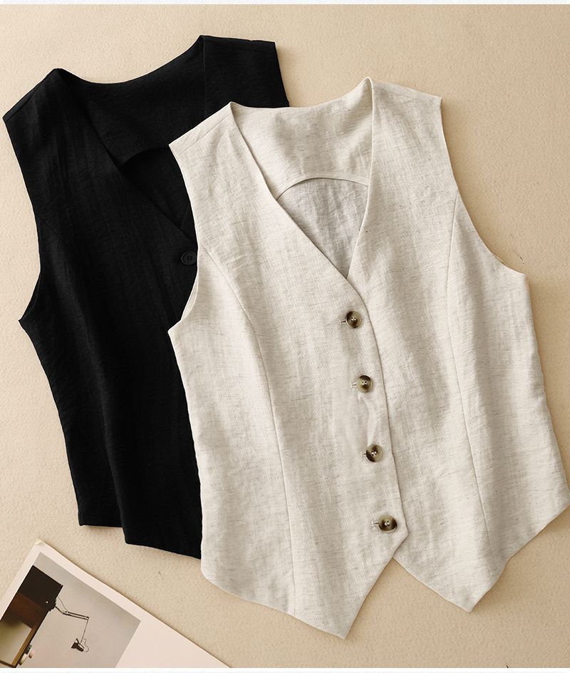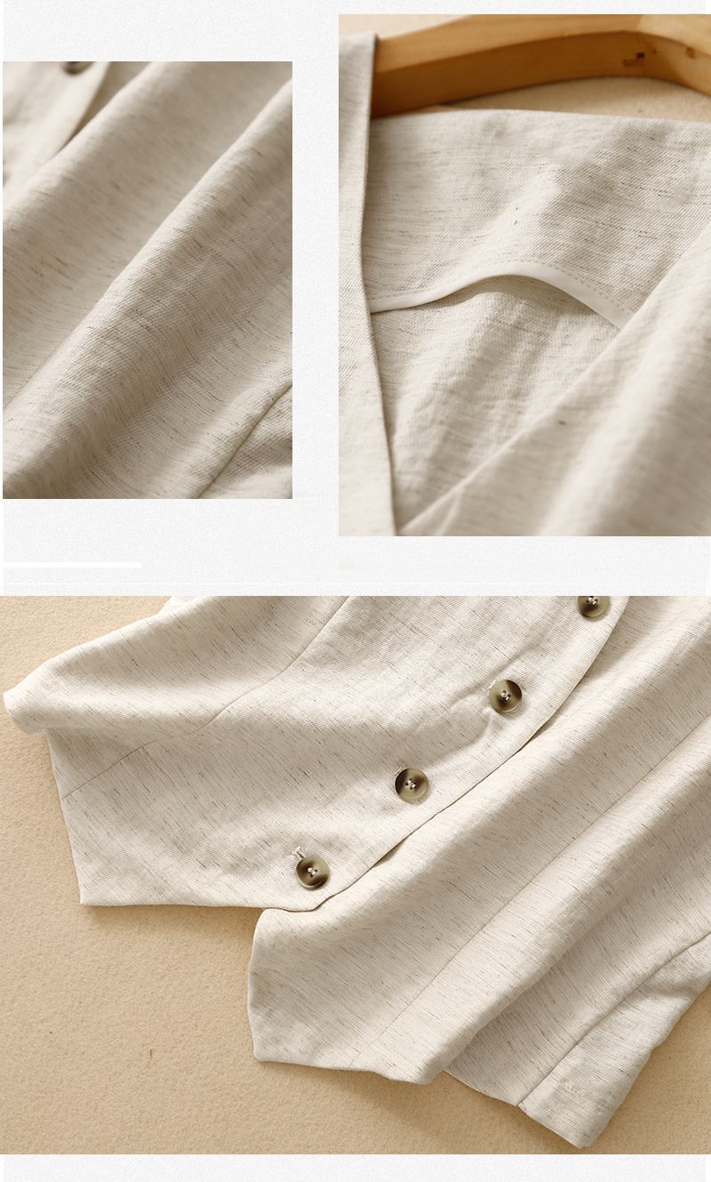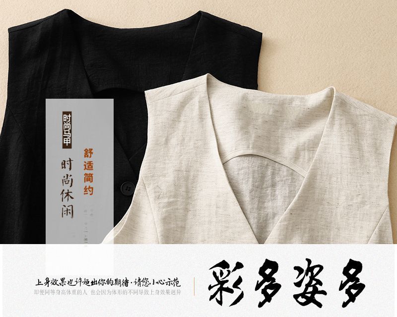 여름 아우터 슈트 브이넥 린넨 조끼 여성용 솔리드 컬러 슬리밍 민소매 조끼 코튼 린넨 양복 조끼 얇은스토어 가기