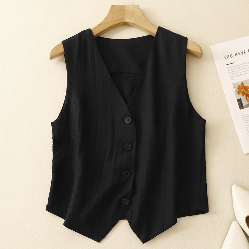 여름 아우터 슈트 브이넥 린넨 조끼 여성용 솔리드 컬러 슬리밍 민소매 조끼 코튼 린넨 양복 조끼 얇은