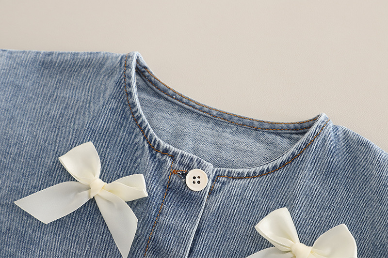 여자 봄, 가을 드레스 세트 2025 새로운 스타일 보우 데님 케이크 스커트 3 피스 세트 귀여운 세트