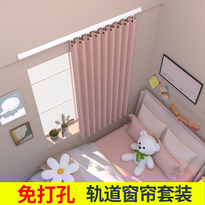 커튼 빛 차단 새로운 스타일의 펀치 없는 설치 창틀 트랙 접착식 간단한 욕실 창 전체 세트스토어 가기