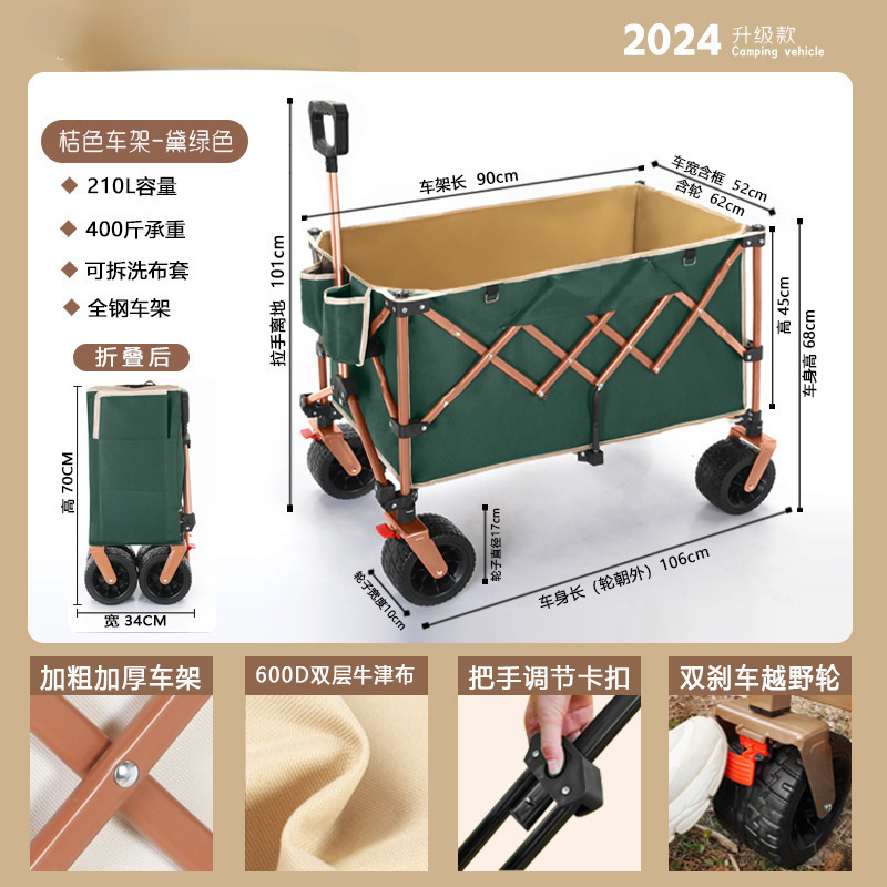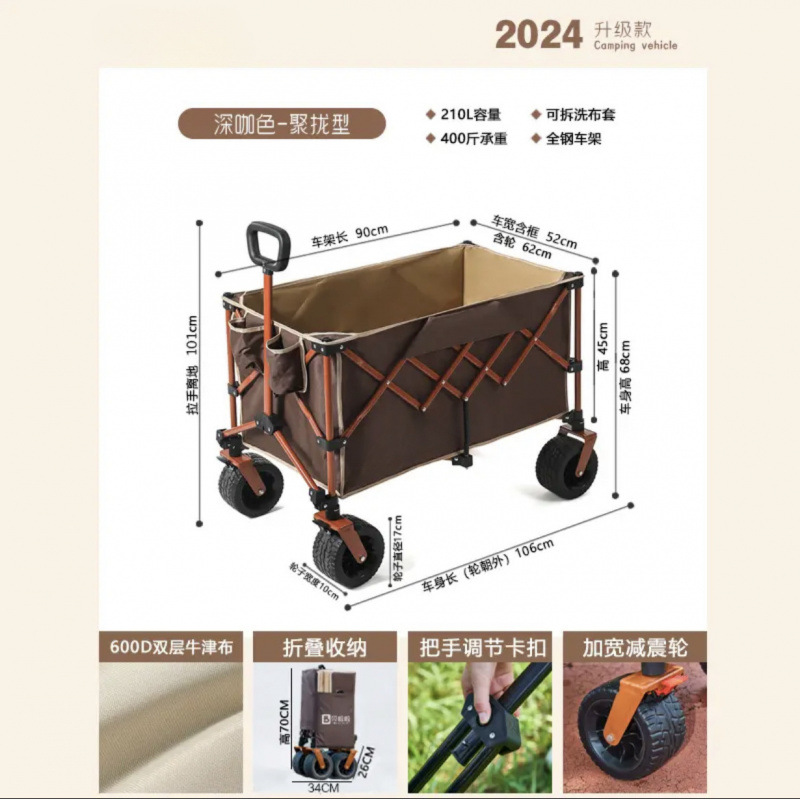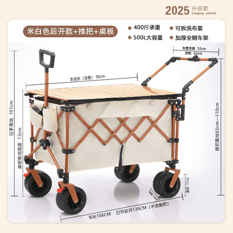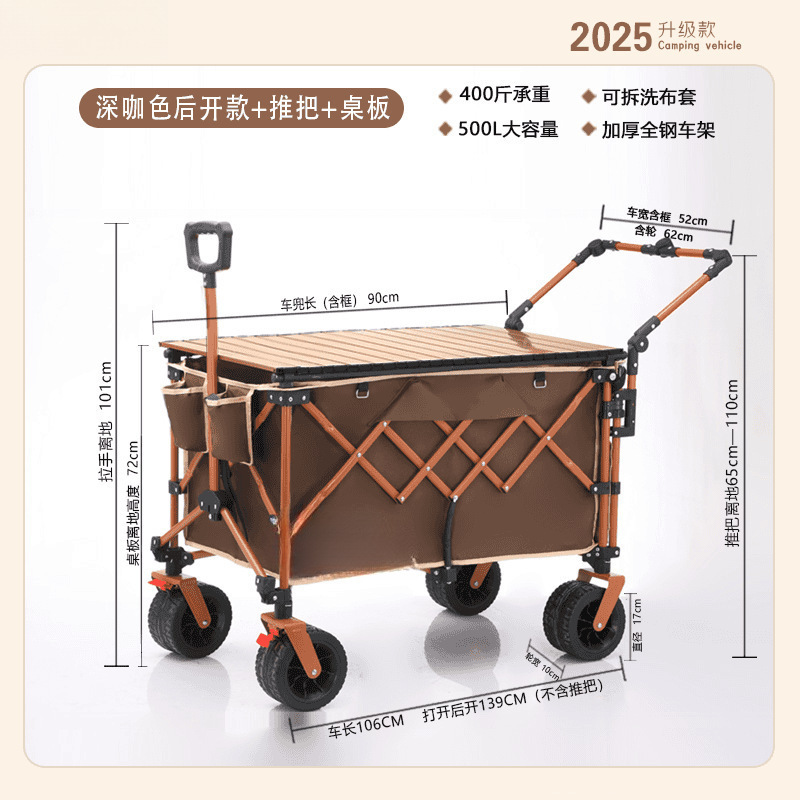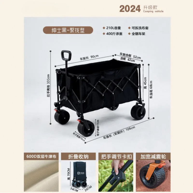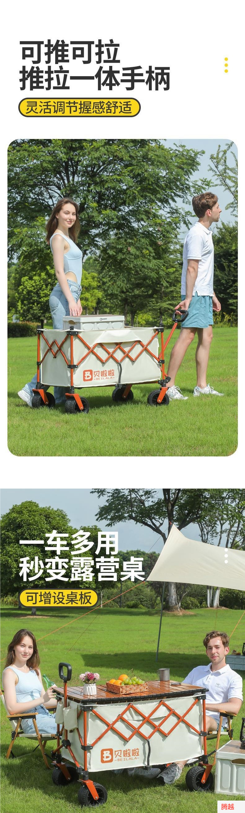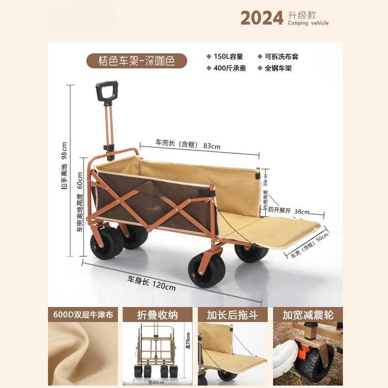 캠핑카 푸시형 4륜 트롤리 캠핑 카트 피크닉 캠핑카 접이식 소형 트레일러스토어 가기