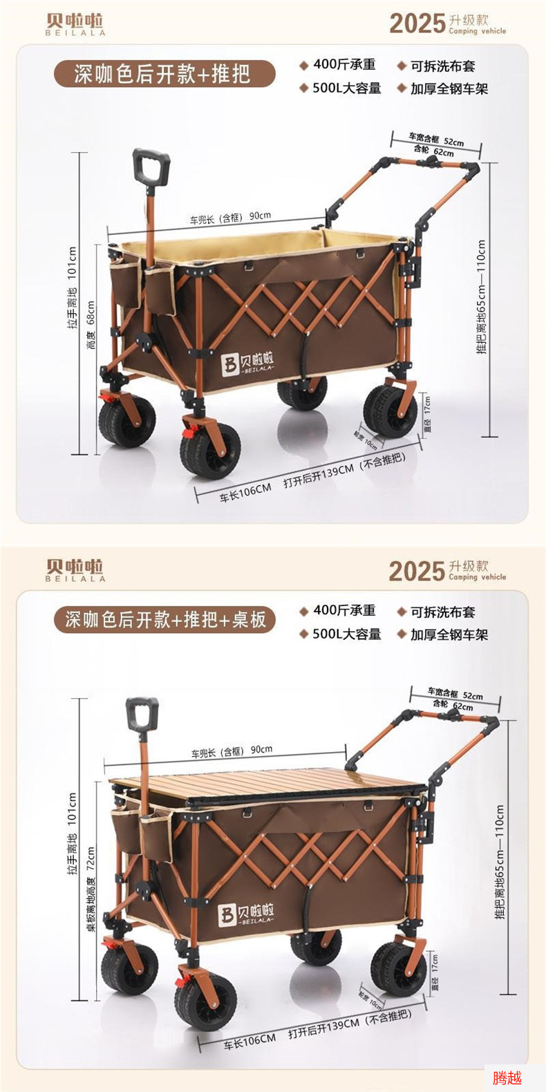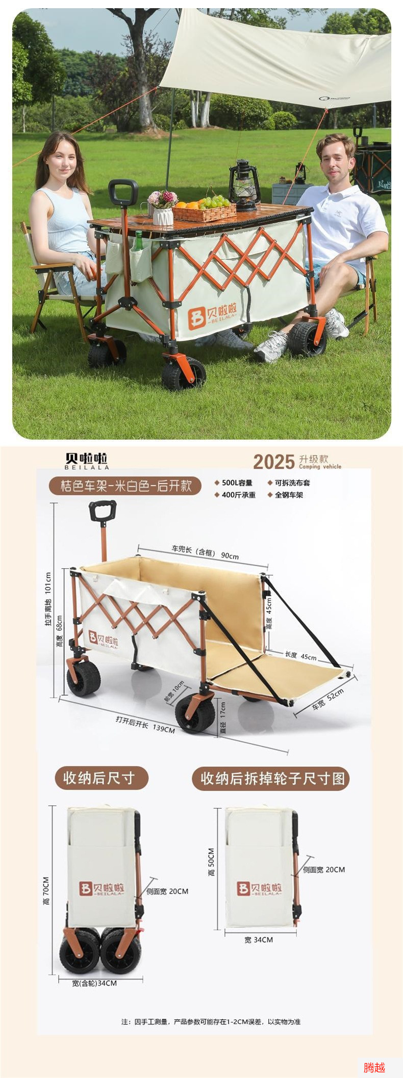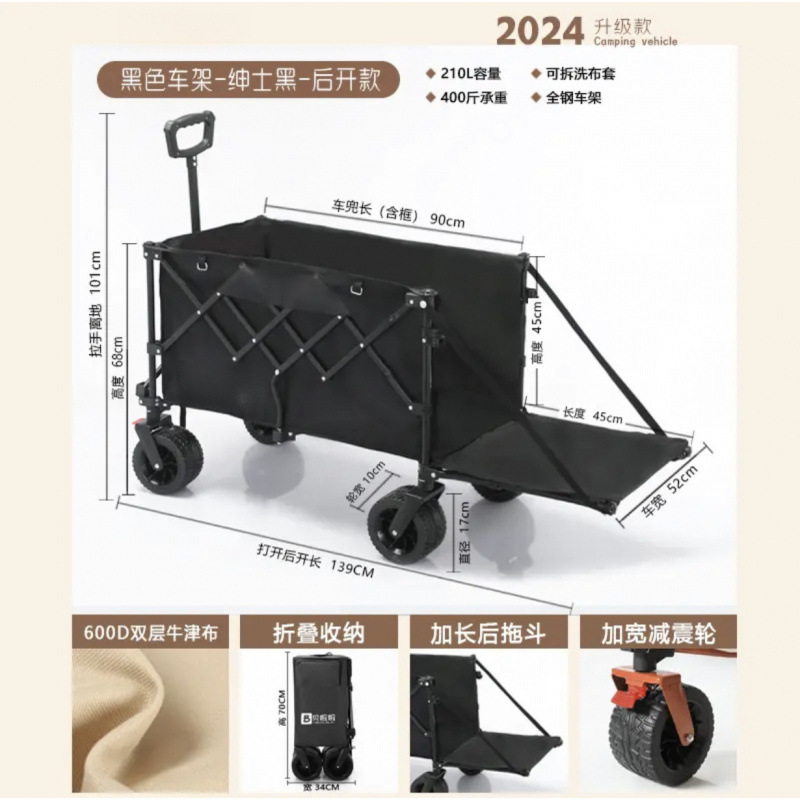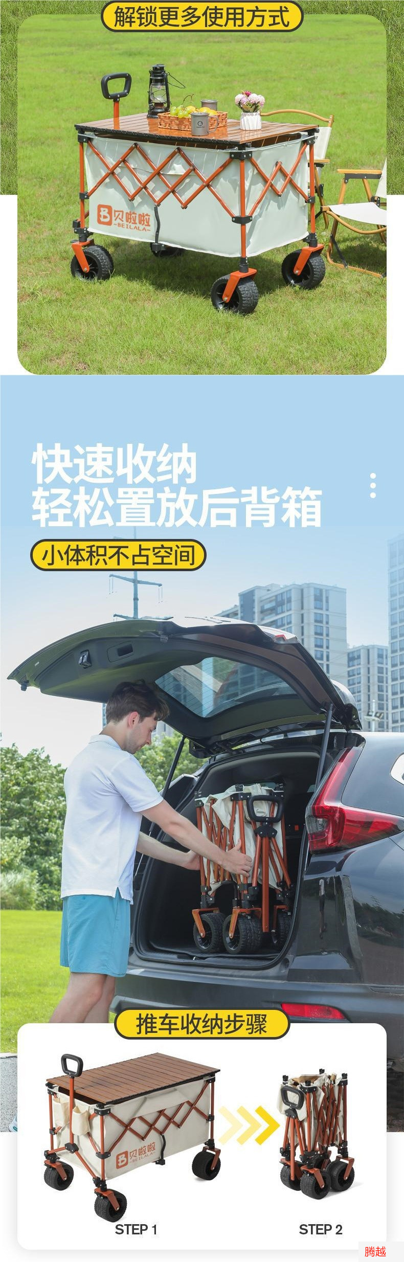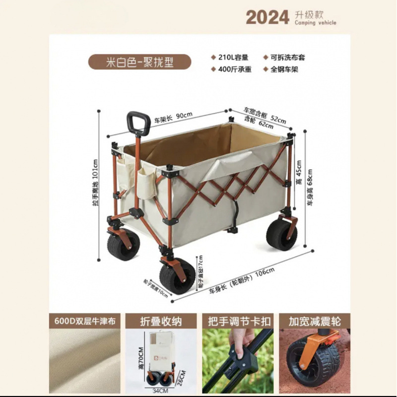 캠핑카 푸시형 4륜 트롤리 캠핑 카트 피크닉 캠핑카 접이식 소형 트레일러스토어 가기