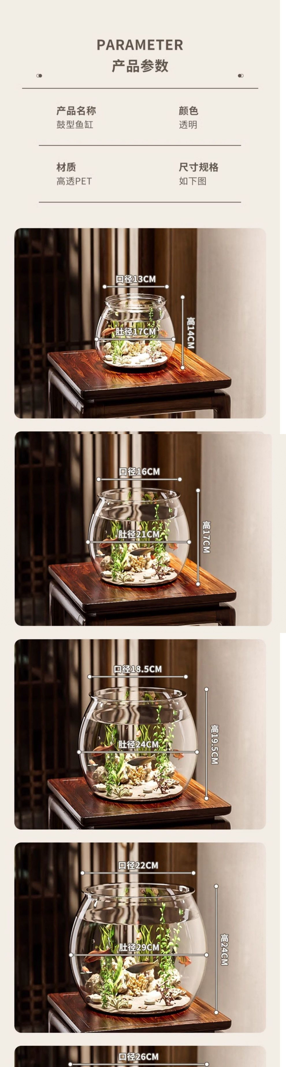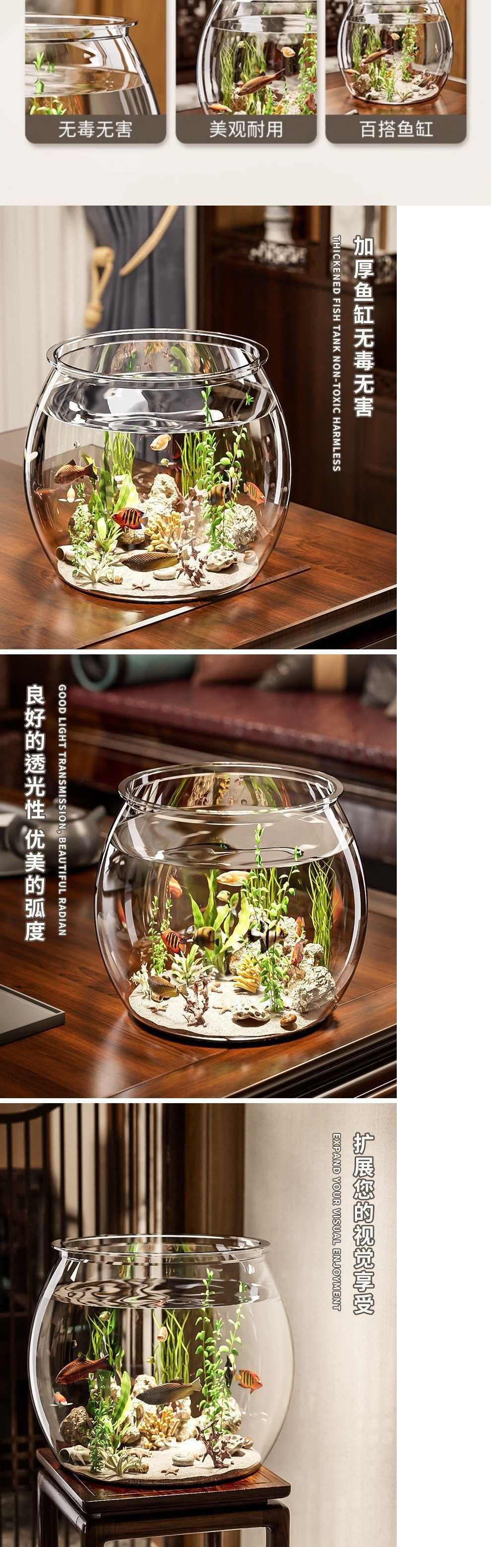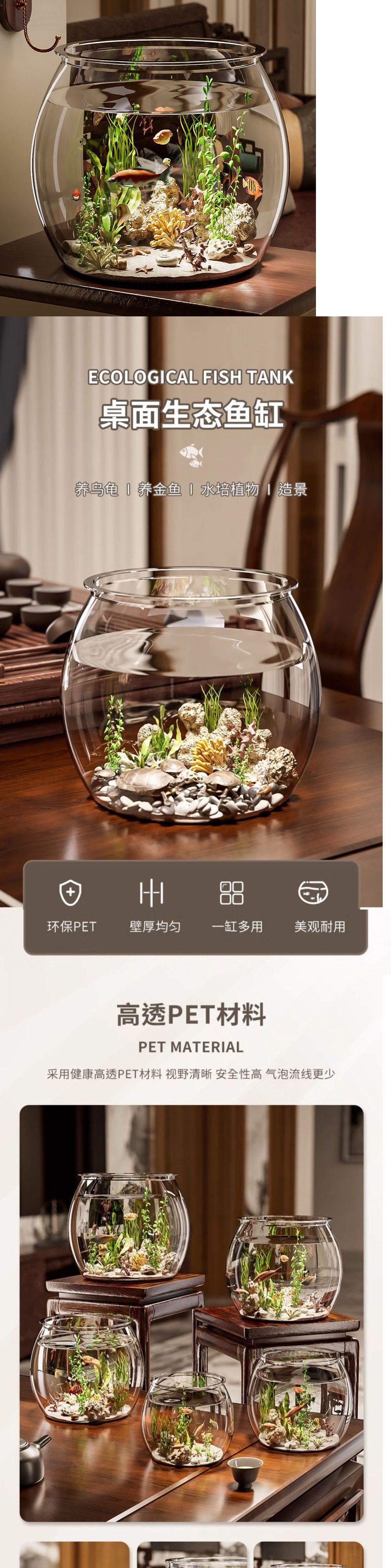 물고기 탱크 작은 가정용 플라스틱 모조 유리 낙하 방지 거실 사무실 금붕어 녹색 감상 마이크로 풍경 생태 탱크 기타스토어 가기