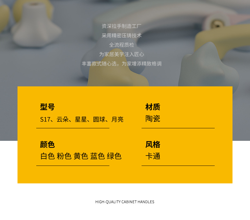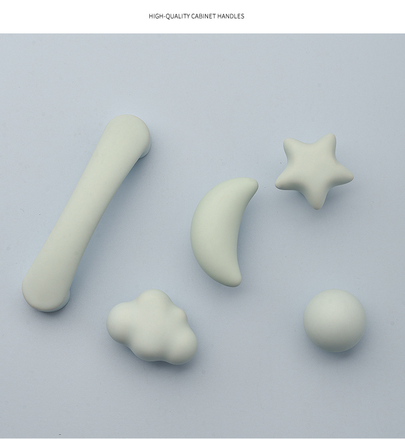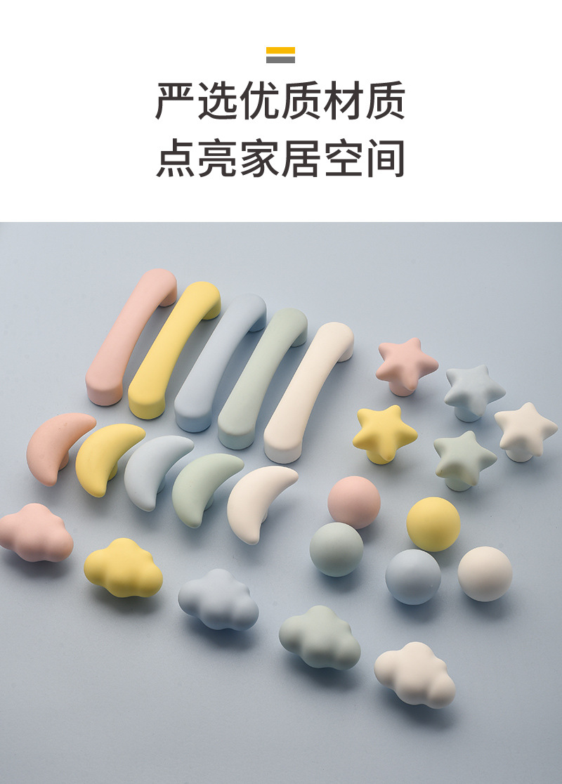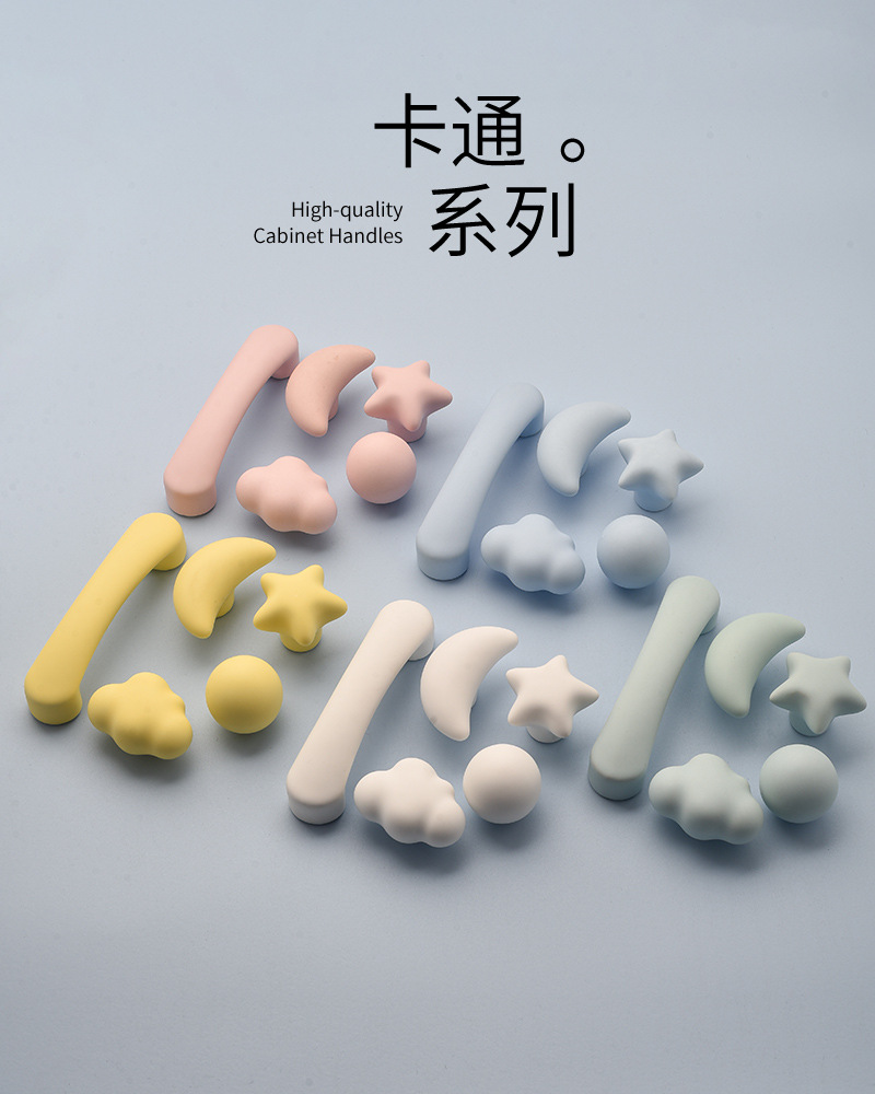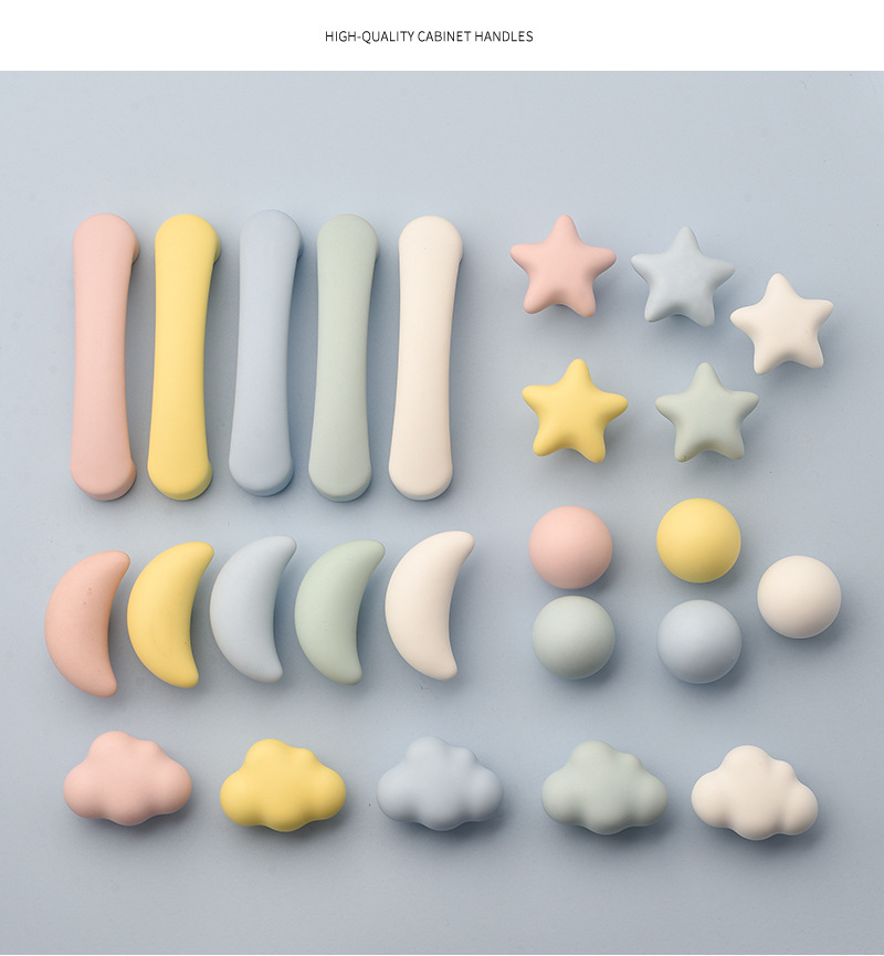 무광택 컬러 별 구름 손잡이 현대 만화 어린이 방 옷장 문 귀여운 홈 충돌 방지 문 손잡이