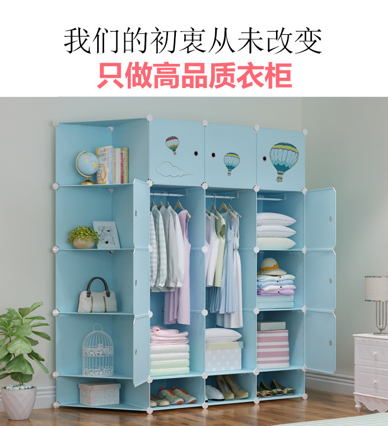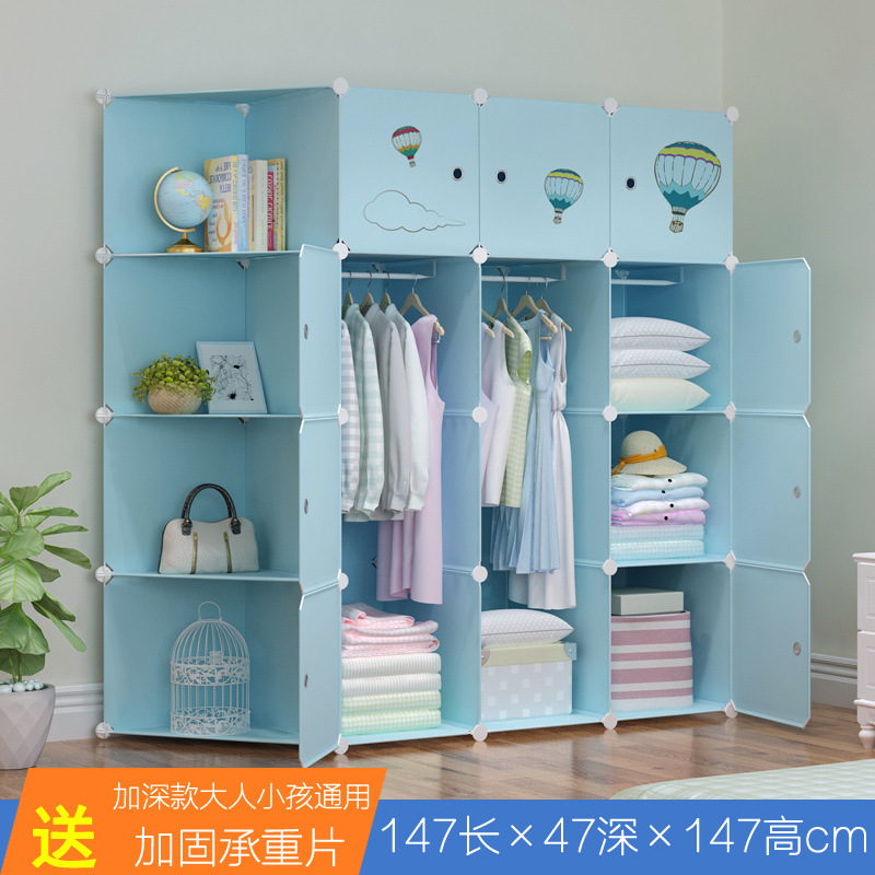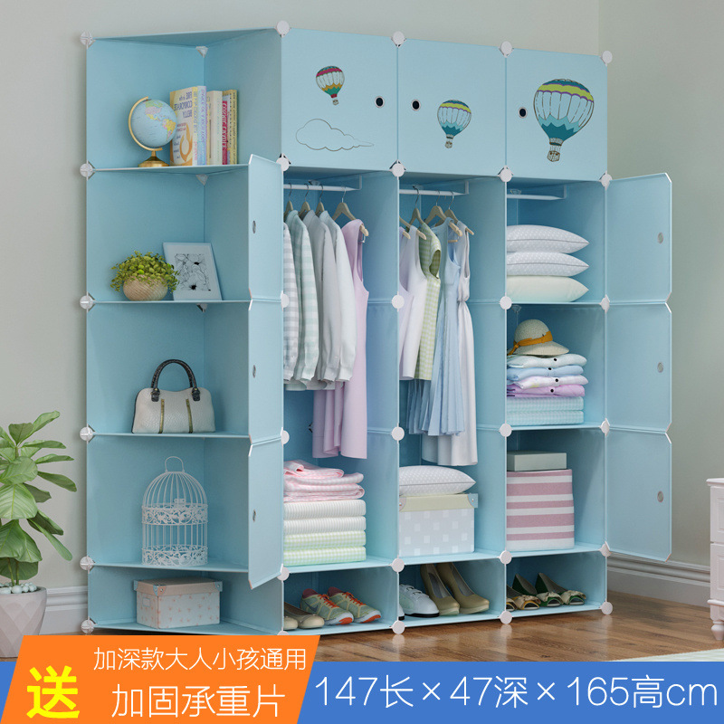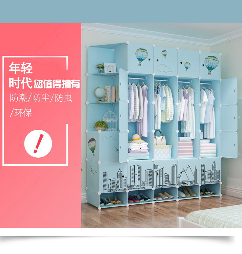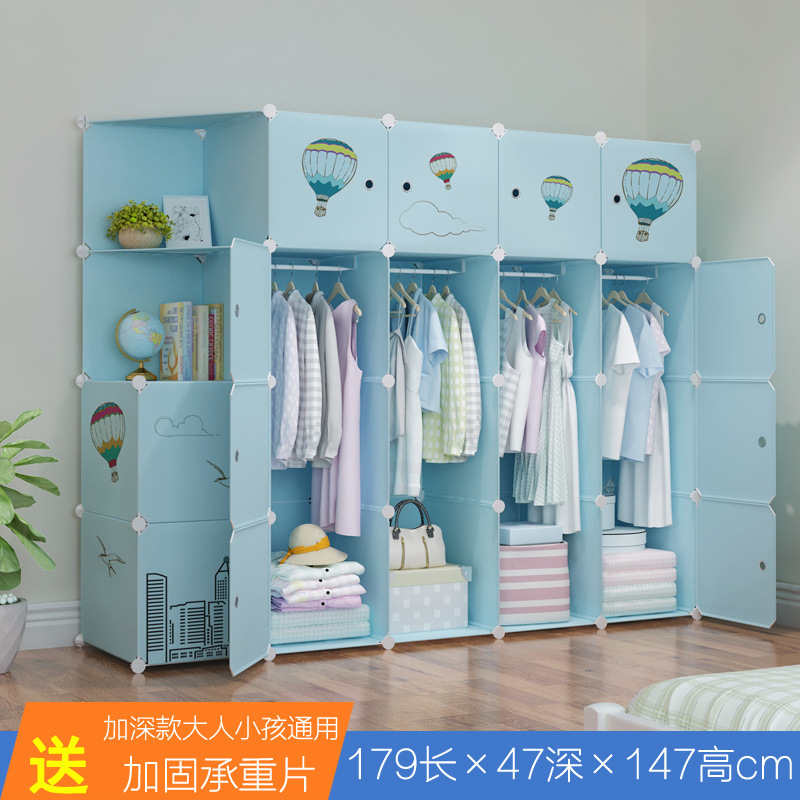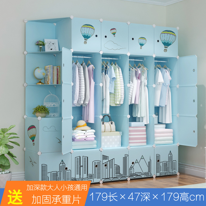 옷장 임대 간단한 현대 조립 가정용 침실 다층 플라스틱 패브릭 옷장 간단한 방수 스토리지 랙