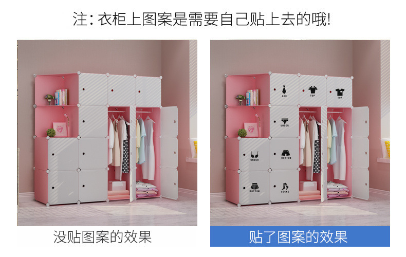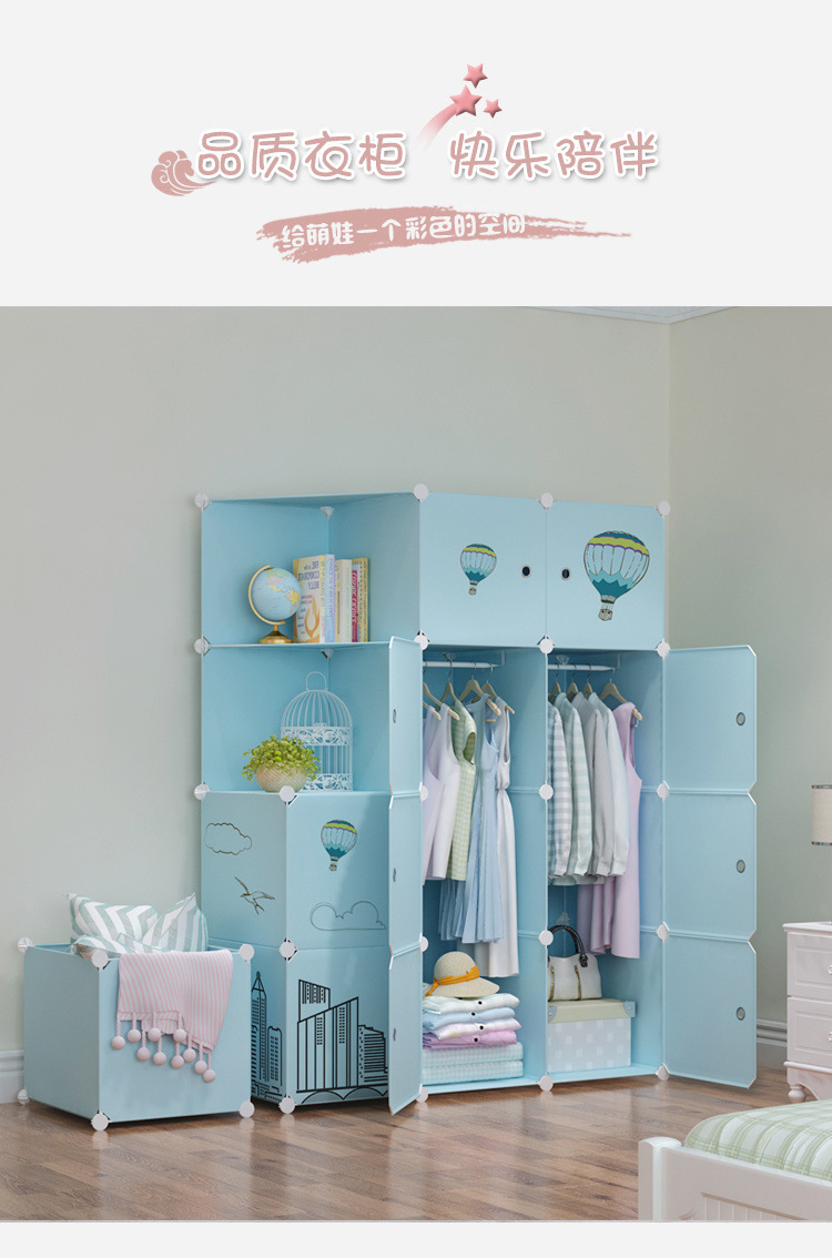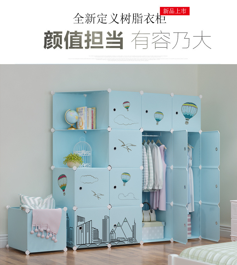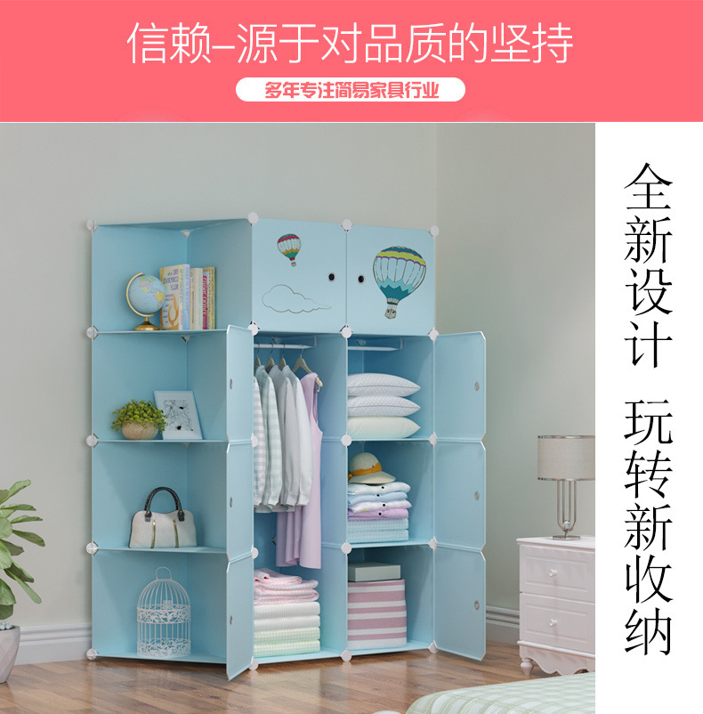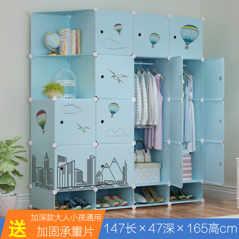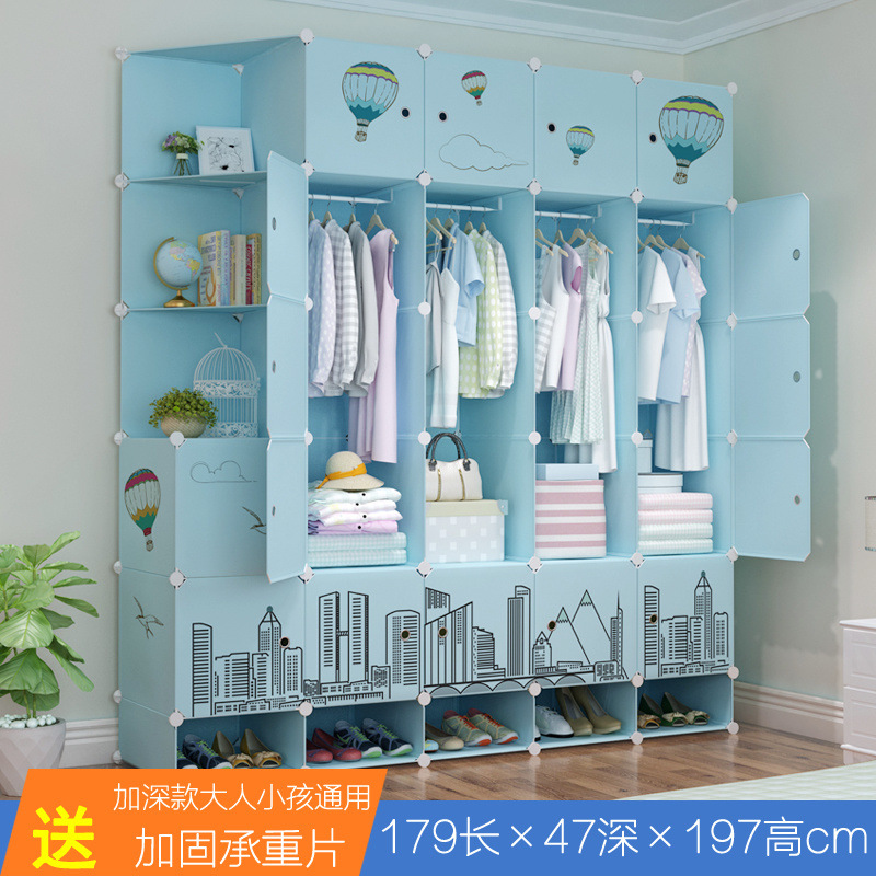옷장 임대 간단한 현대 조립 가정용 침실 다층 플라스틱 패브릭 옷장 간단한 방수 스토리지 랙
