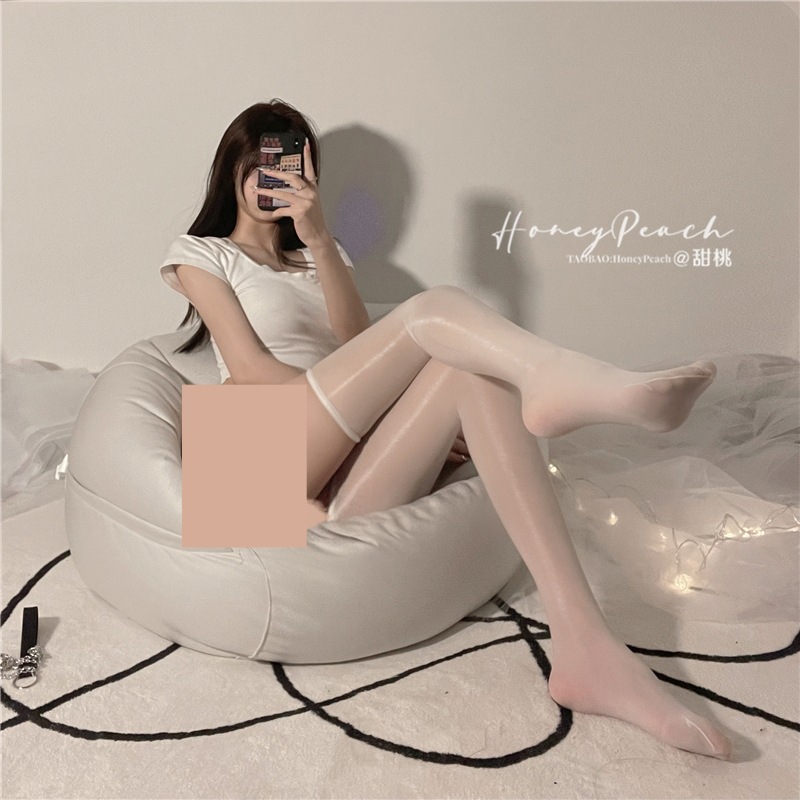 • 흰색 광택 무릎 양말