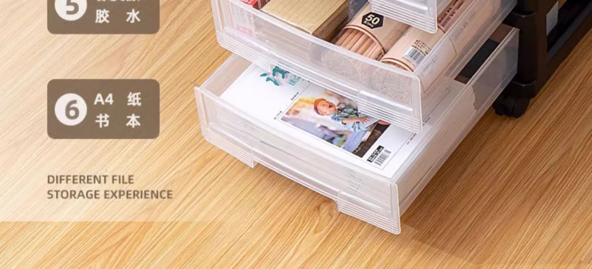 서랍형 수납장 다층 투명 이동식 바퀴 달린 책상 밑 수납 홈 a4 플로어 스탠딩 데스크탑 수납함스토어 가기