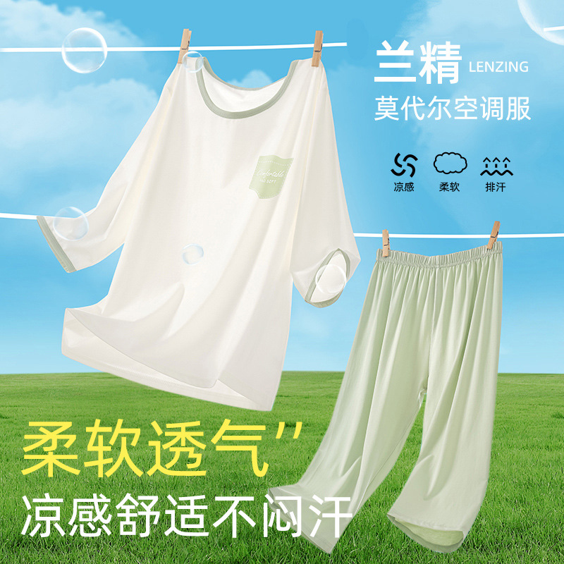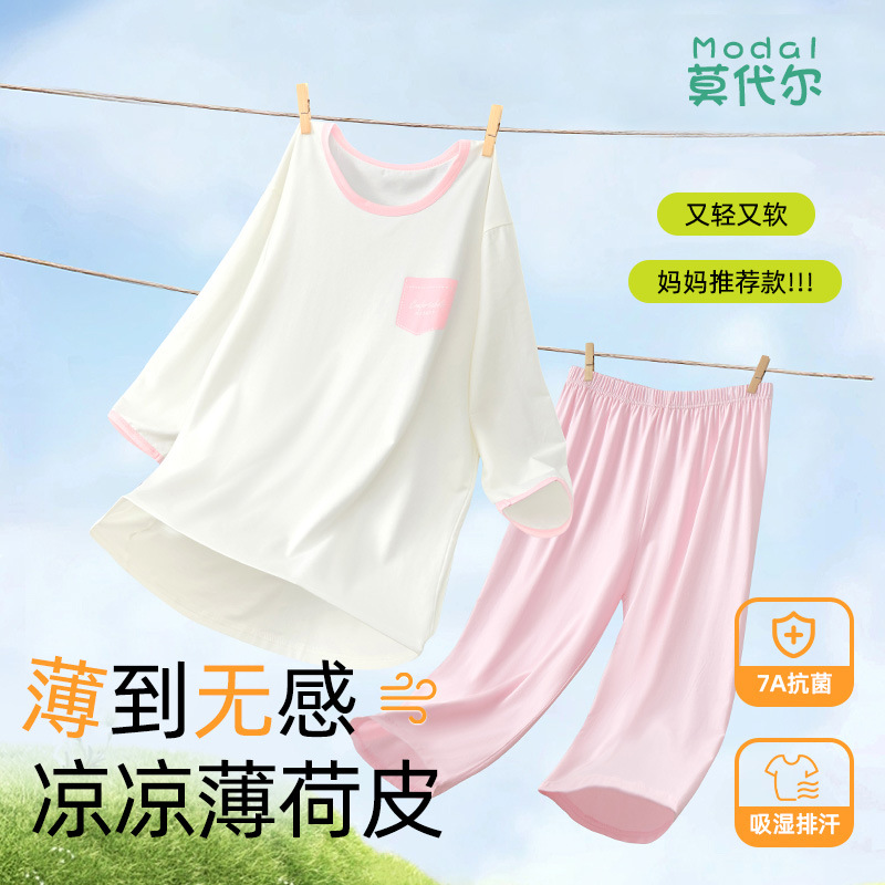아동용 잠옷 모달 아이스 실크 쿨링 슈트 소년 소녀 가정복 에어컨 슈트 클래스 A 큰 어린이 여름 얇은 스타일