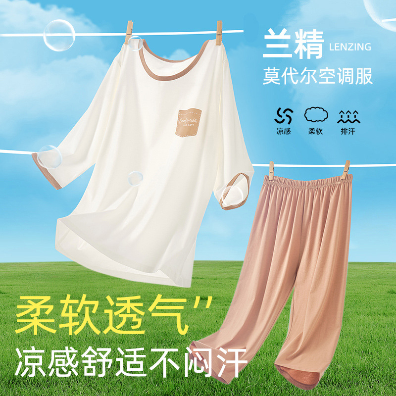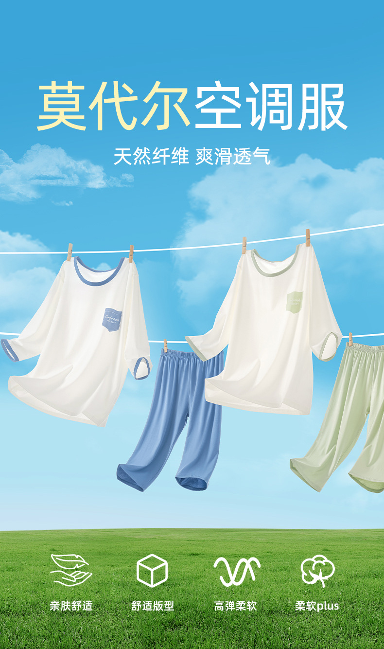 아동용 잠옷 모달 아이스 실크 쿨링 슈트 소년 소녀 가정복 에어컨 슈트 클래스 A 큰 어린이 여름 얇은 스타일스토어 가기