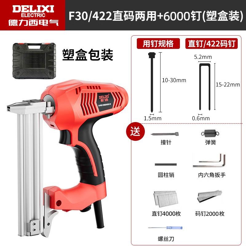 Delixi 전기 네일 건 목공 F30 에어 네일 건 이중 목적 스트레이트 코드 네일 건 네일 건 목공 도구스토어 가기