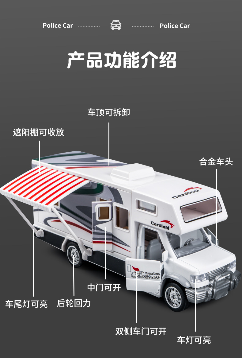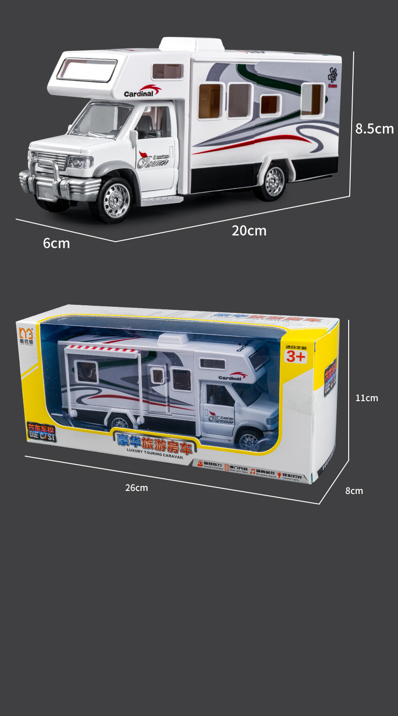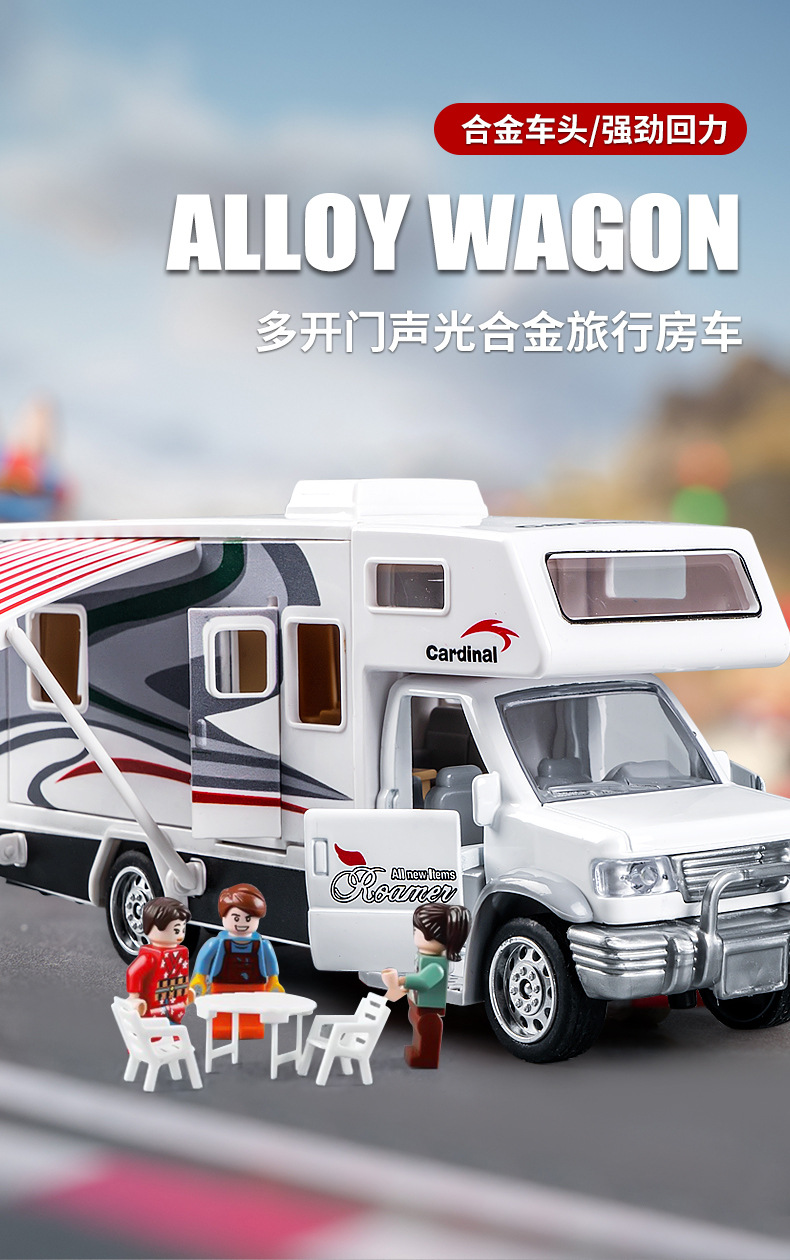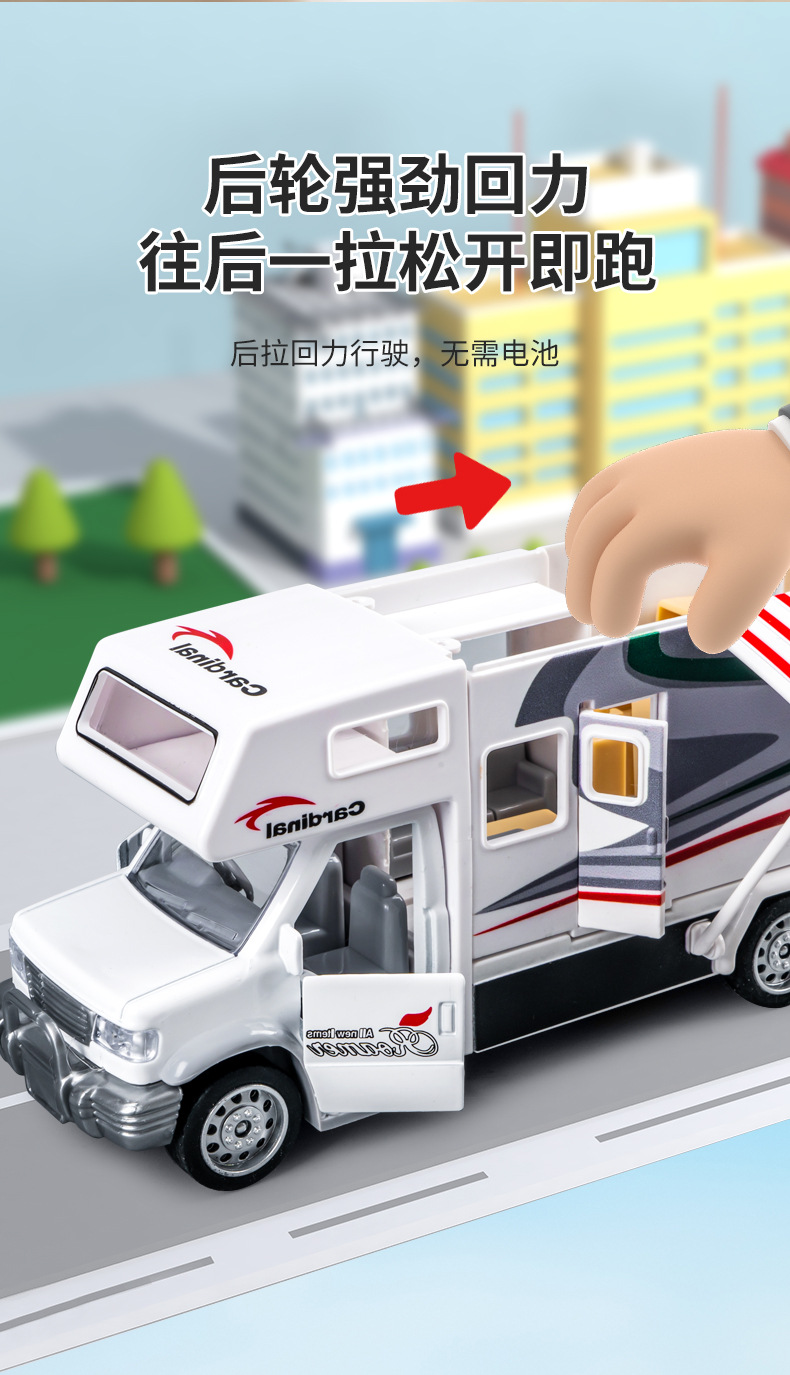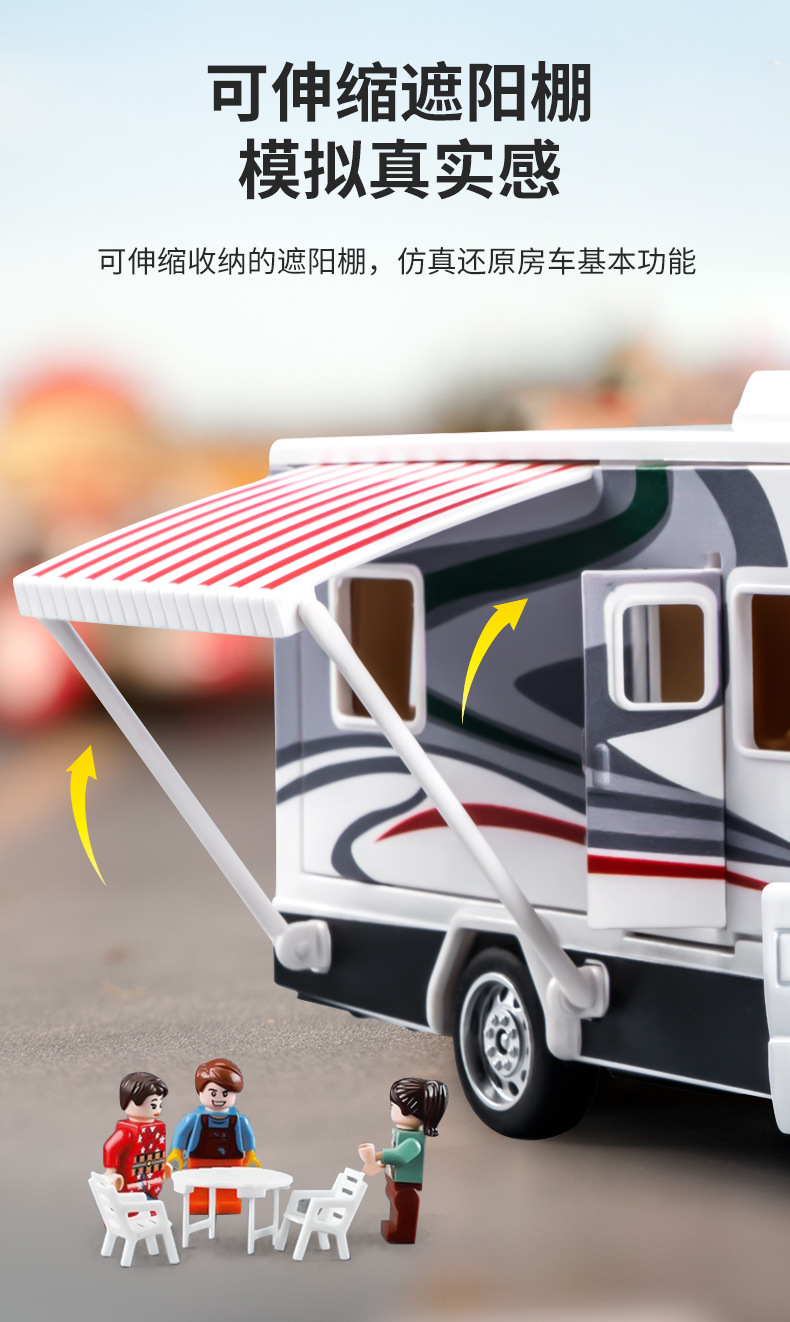 어린이 합금 RV 장난감 관성 풀백 여행 컨버터블 자동차는 문을 여길 수 있습니다 소리와 빛 교육 장난감 자동차스토어 가기