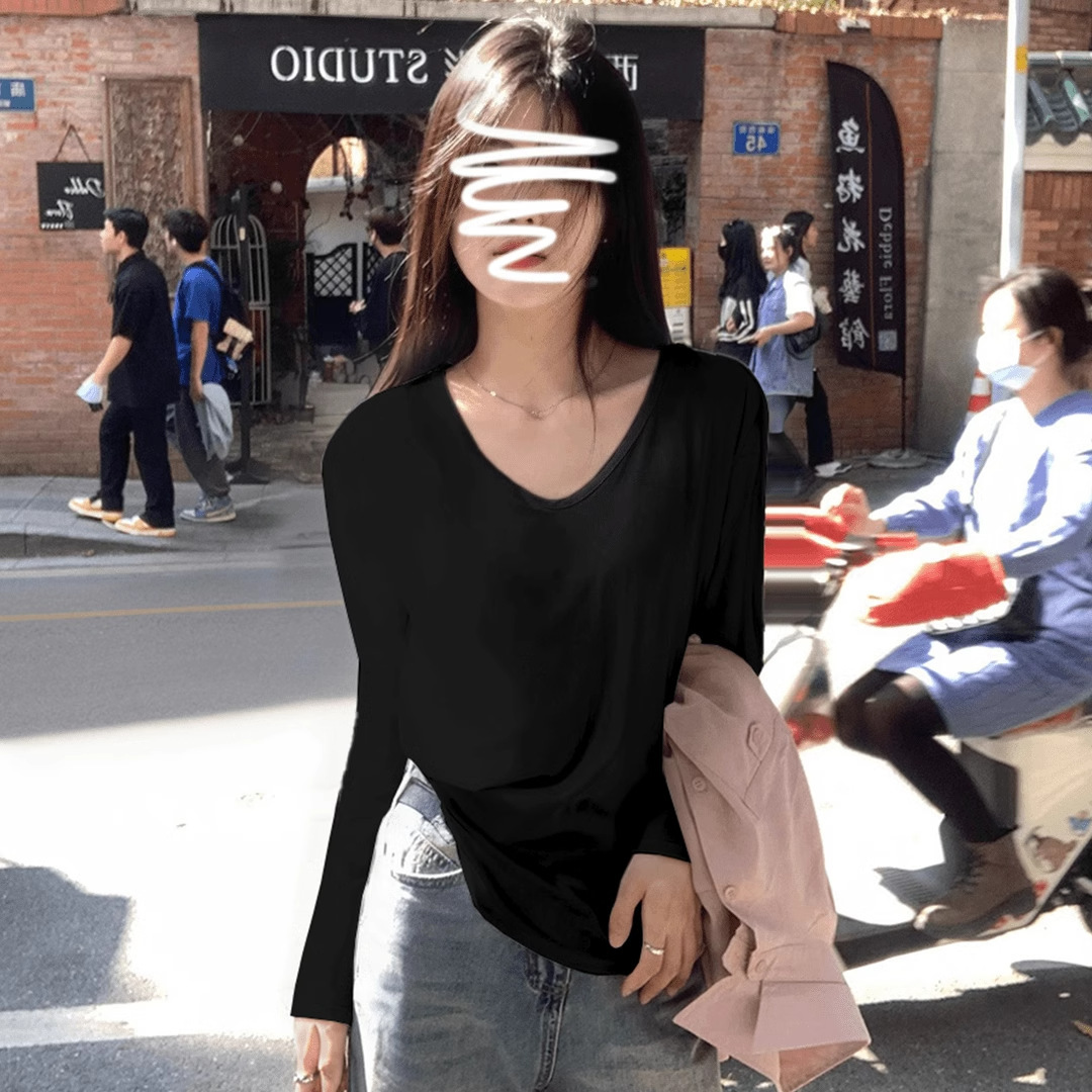 가을 신상 레이지 V넥 패셔너블 퓨어 러블리 스타일 긴팔 슬림핏 퓨어 화이트 탑 여성용 오버숄더 다용도 하의 셔츠