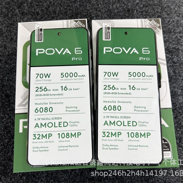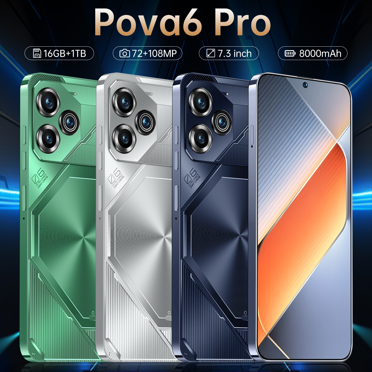 새로운 핫 판매 POVA6 Pro 국경 간 휴대 전화 진정한 천공 대형 스크린 16+256G 안드로이드 대외 무역 스마트 폰스토어 가기