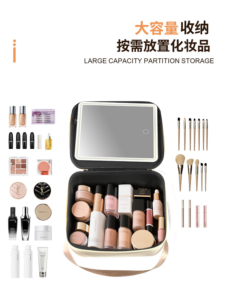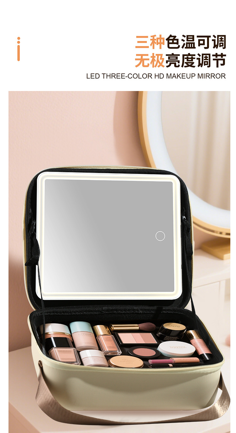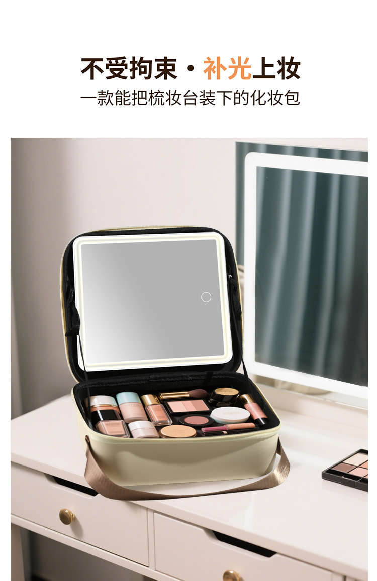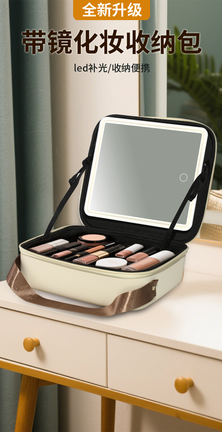 거울과 LED 조명이 있는 크로스보더 화장품 가방, 휴대용 대용량 여행 가방, 소녀 감성 인기 제품스토어 가기