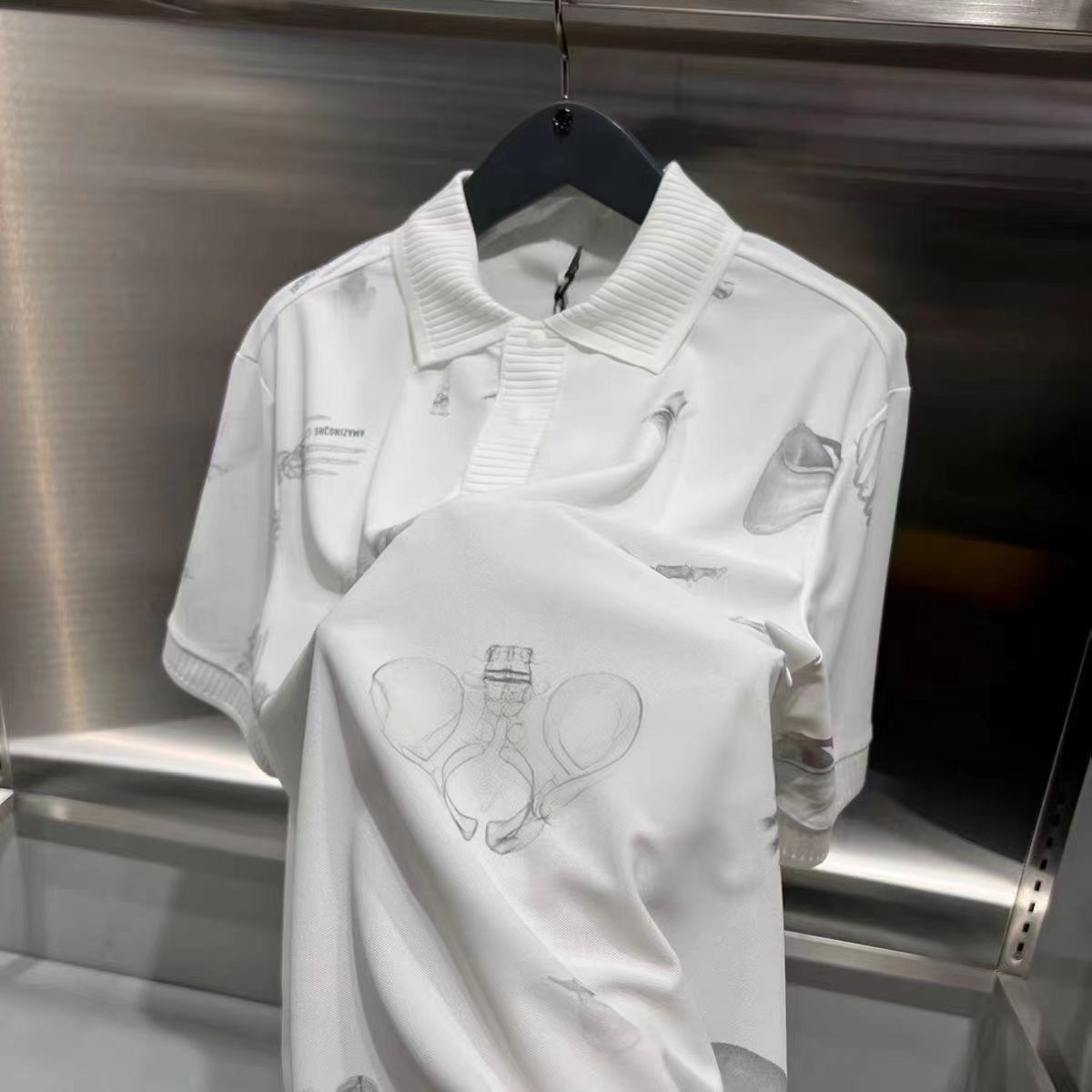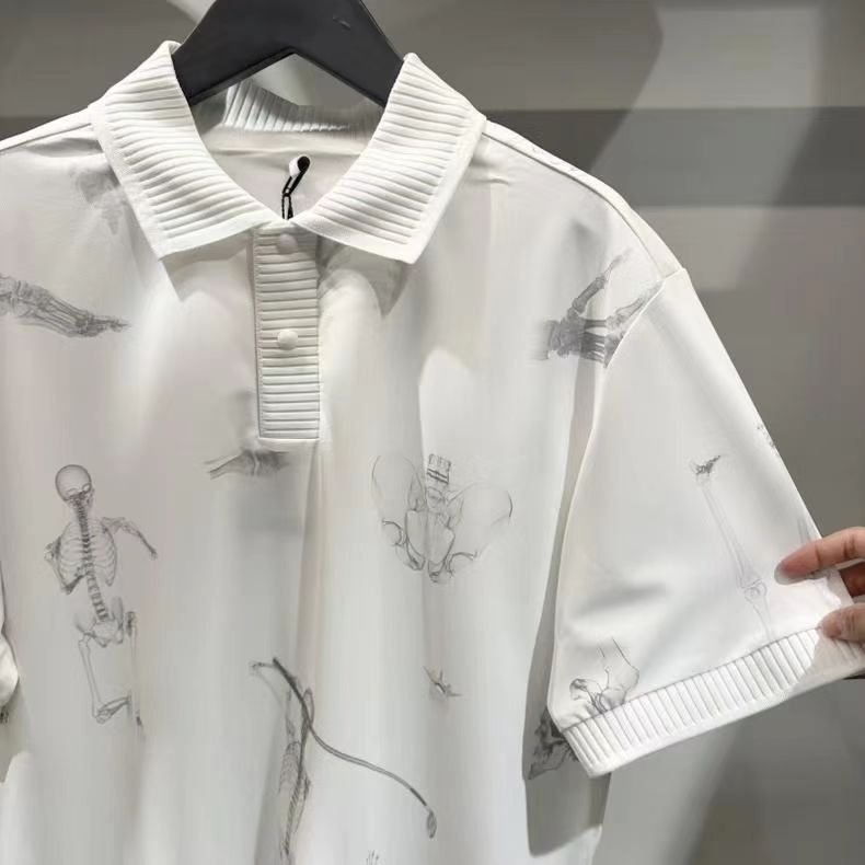 골프웨어 25 여름 신작 남성용 편안한 속건성 캐주얼 라펠 자외선 차단제 프린트 반팔 야외 스포츠스토어 가기