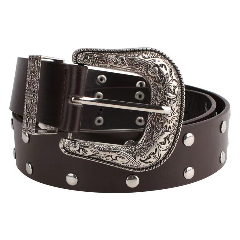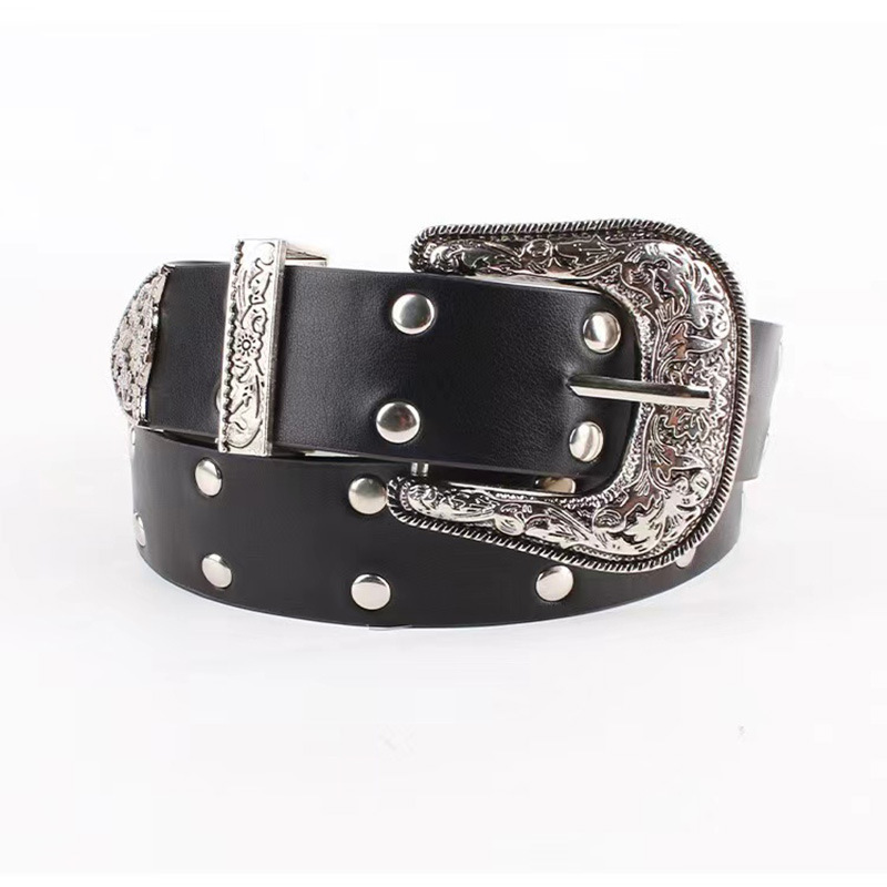 벨트 핫 소녀 리벳 금속 버클 바지 벨트 밀레니엄 스타일 미국 복고풍 중공업 펑크 블랙 벨트