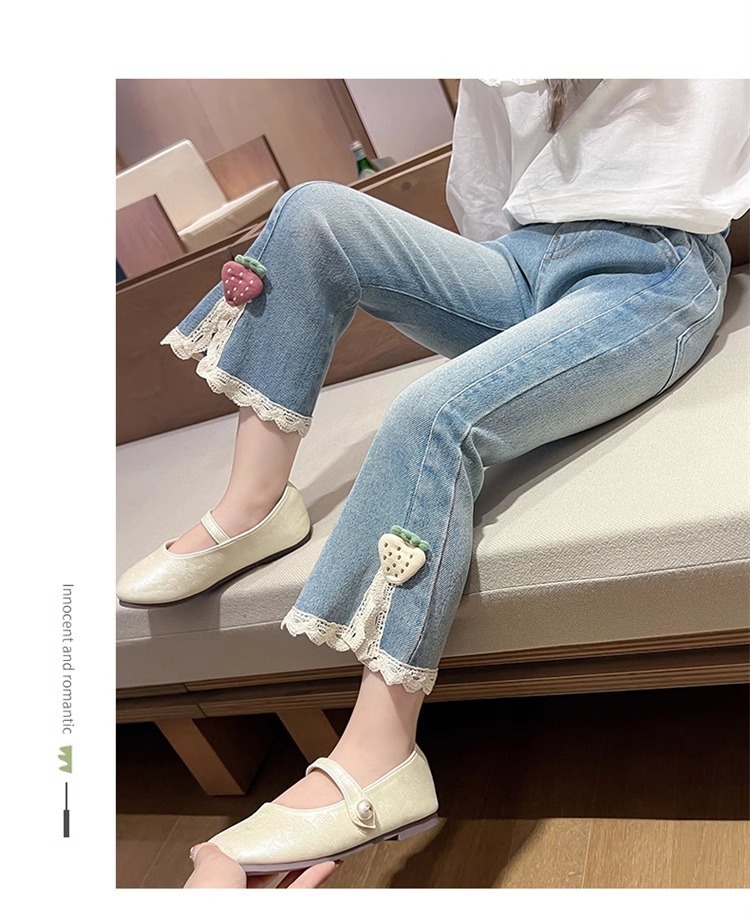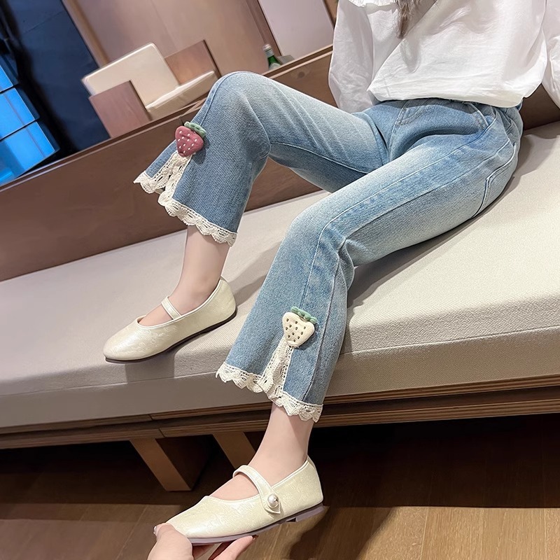 아동복, 한국식 나팔바지, 봄, 가을 여아 레이스 팬츠, 트렌디한 여아 청바지, 가을 신상품