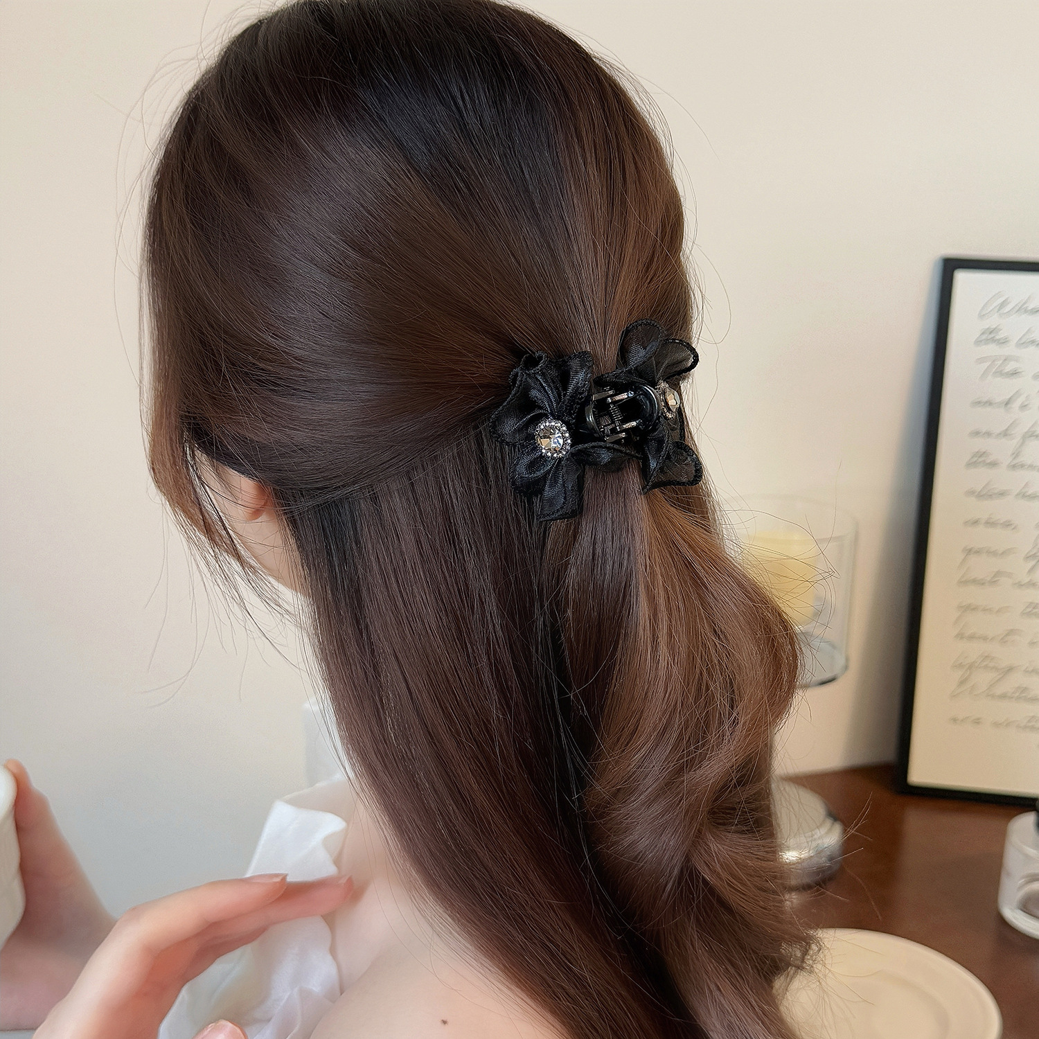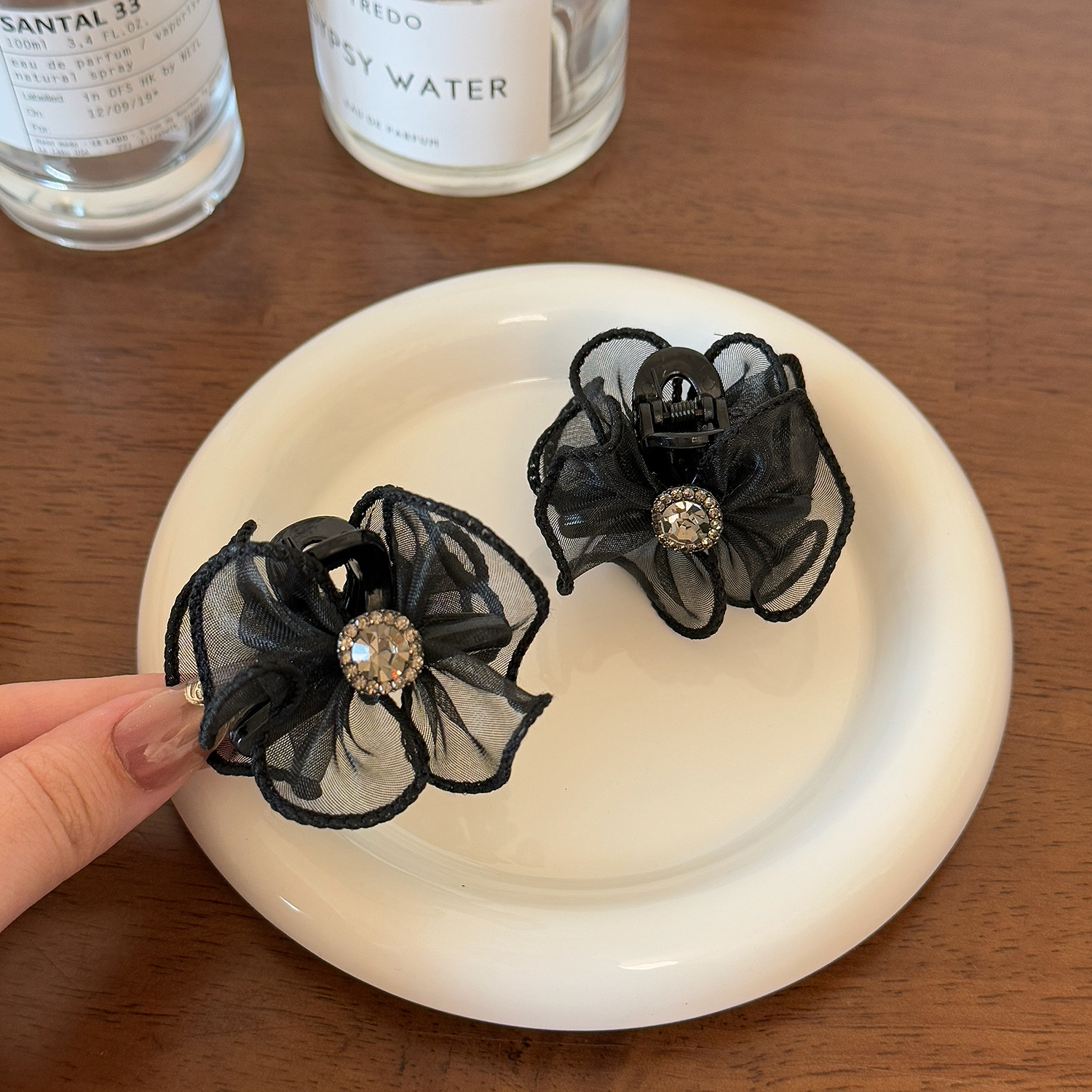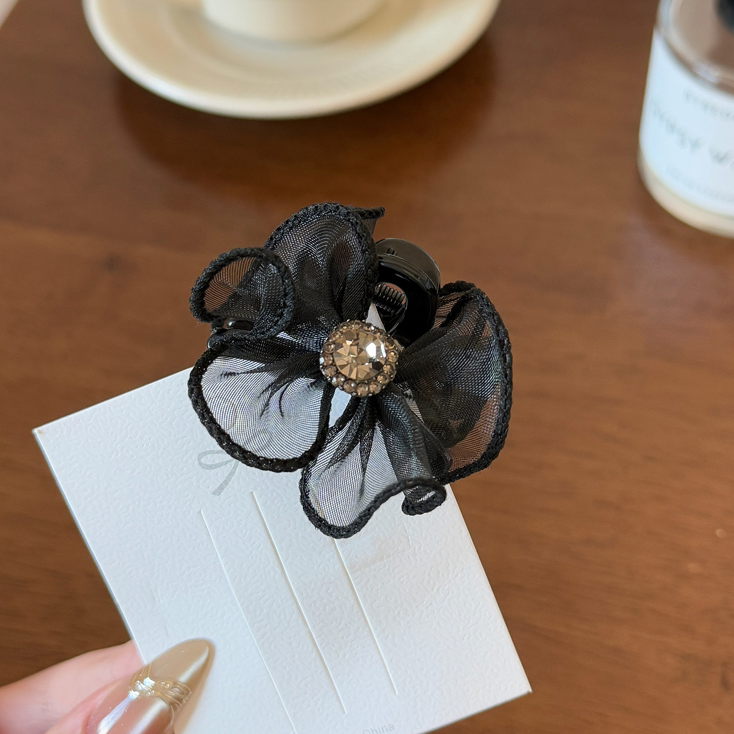 한국판 신작 인터넷 연예인 절묘한 작은 머리핀 이마 앞머리 클립 메쉬 레이스 상어 머리핀 여성용 머리 장식스토어 가기
