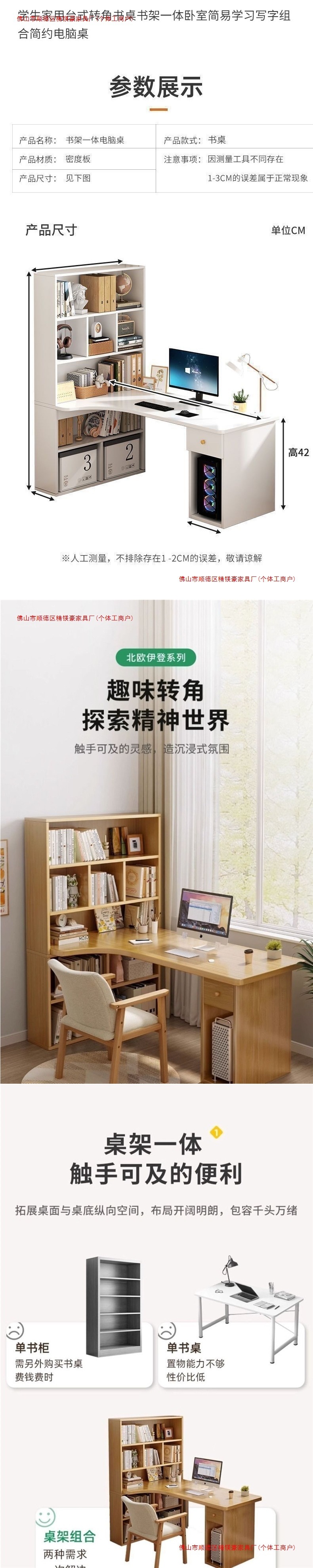 컴퓨터 데스크탑 테이블 코너 책상 책장 조합 간단한 가정용 침실 학생 학습 테이블 쓰기 테이블스토어 가기
