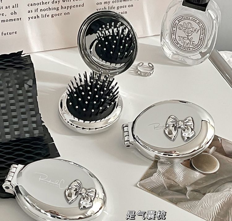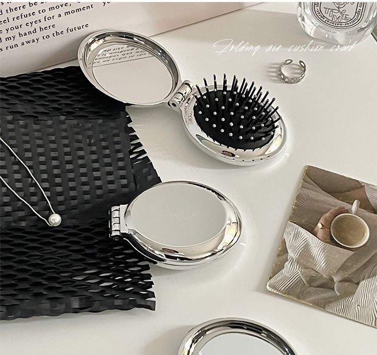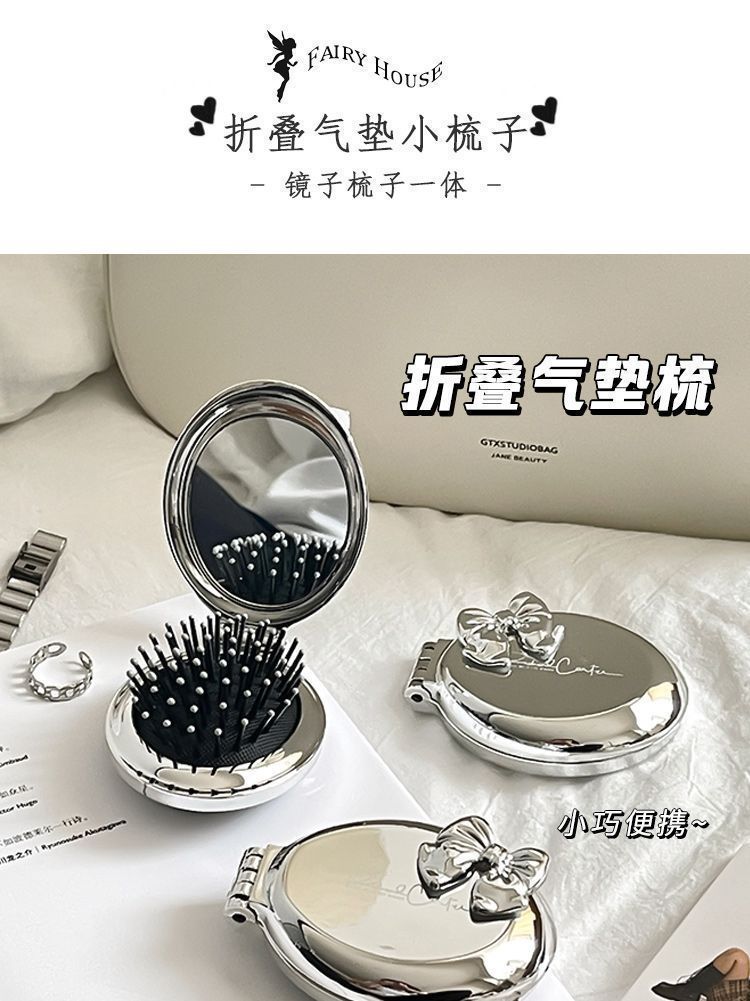 여성과 어린이를 위한 소형 빗 휴대용 접이식 빗 에어백 에어쿠션 헤어 스무딩 마사지 미니 거울 일체형 빗스토어 가기