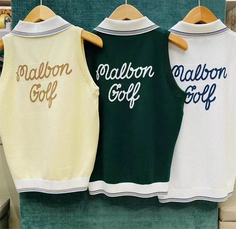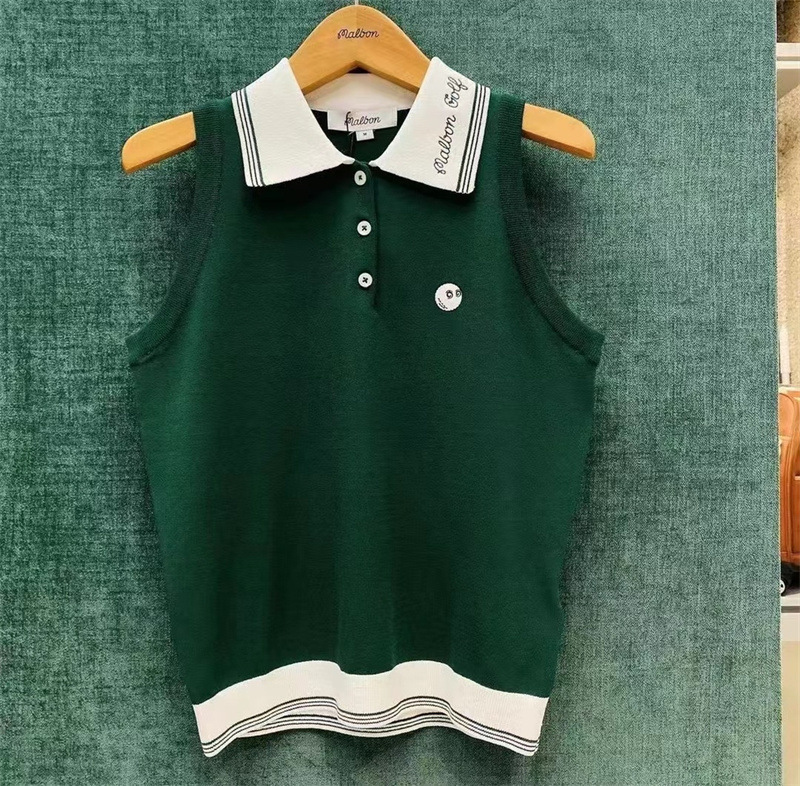 오리지널 한국 골프 의류 여성 라펠 스웨터 민소매 탑 아이스 실크 여름 패션 슬림스토어 가기