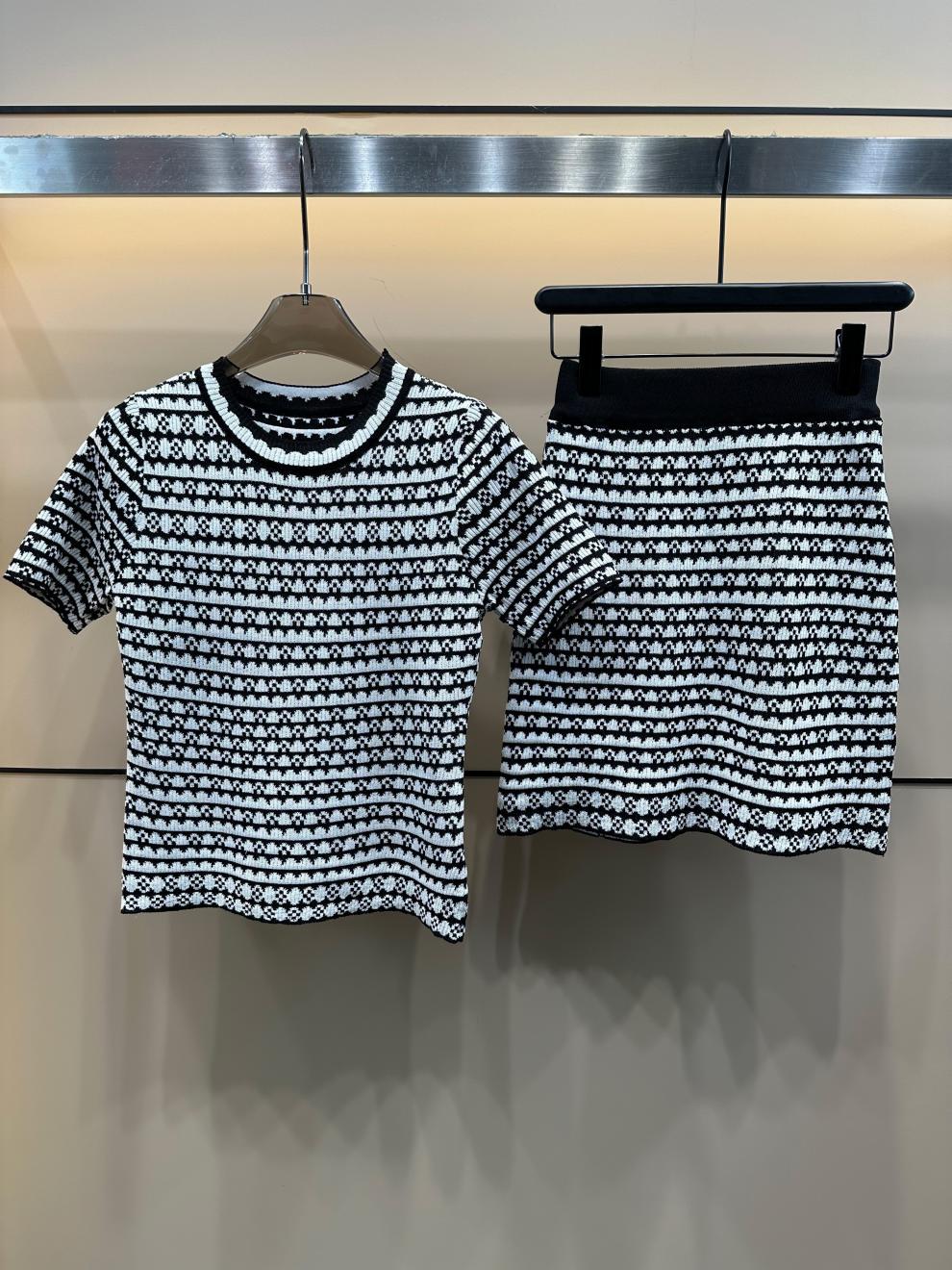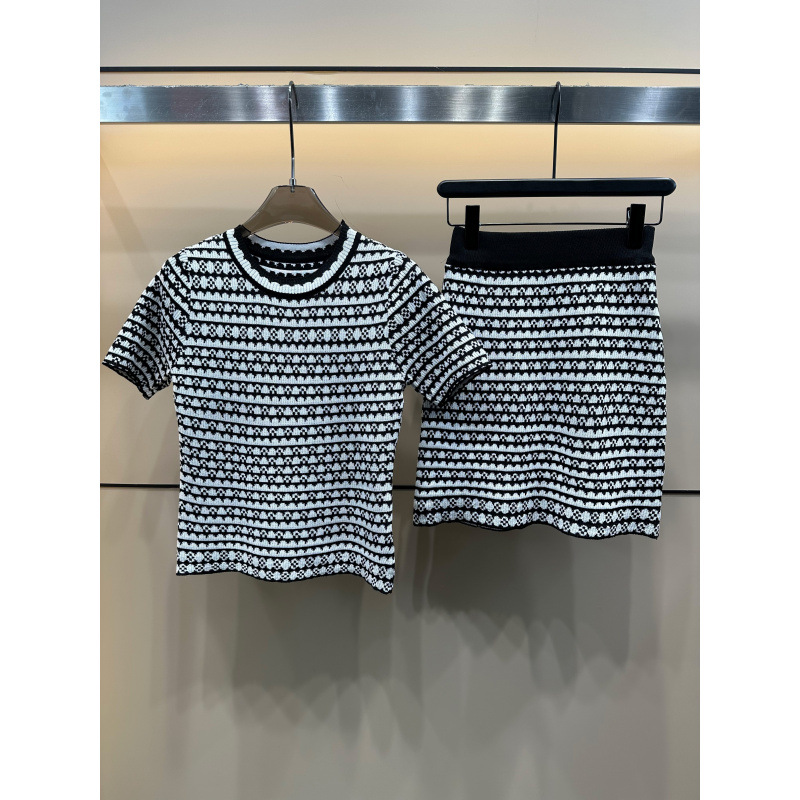 25번째 여름 신작 Xiangjia Houndstooth 니트 반팔 라운드 넥 풀오버 ➕ 스커트 니트 여성 투피스 슈트