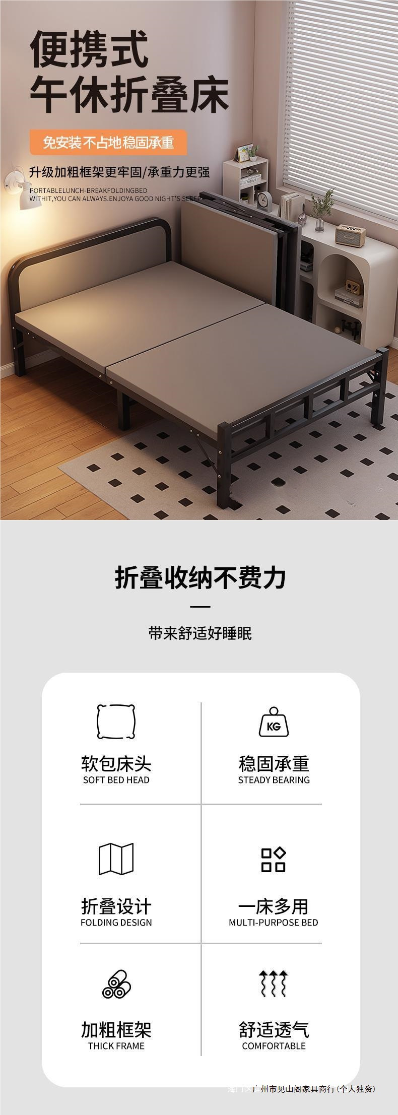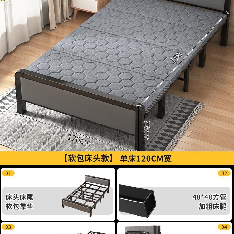 접이식 침대 성인 가정용 싱글 침대 휴대용 접이식 1.2m 임대 주택 강력하고 내구성이 뛰어난 단단한 철제 프레임 침대스토어 가기