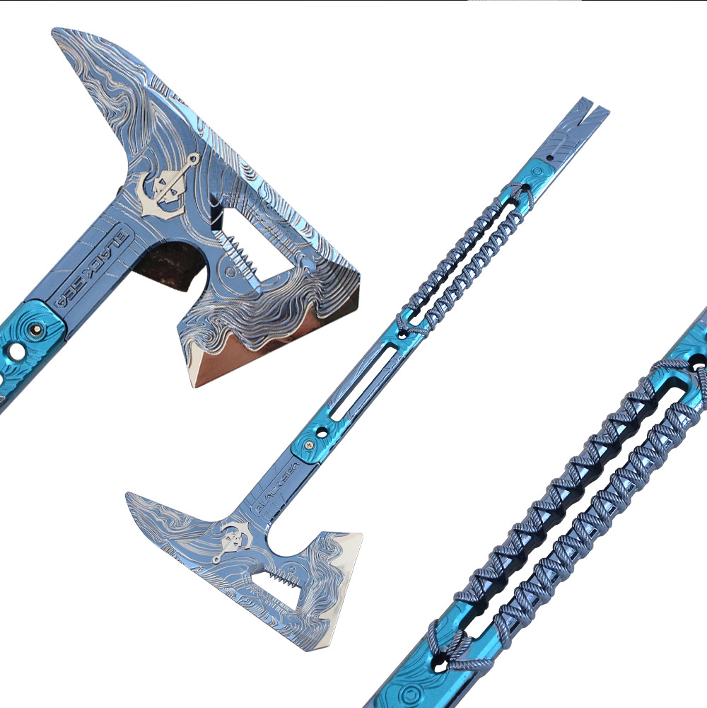 Shuojie Delta 주변기기 근접 무기 흑해 전술 도끼 게임 무기 모델 장식품 키 체인 장난감