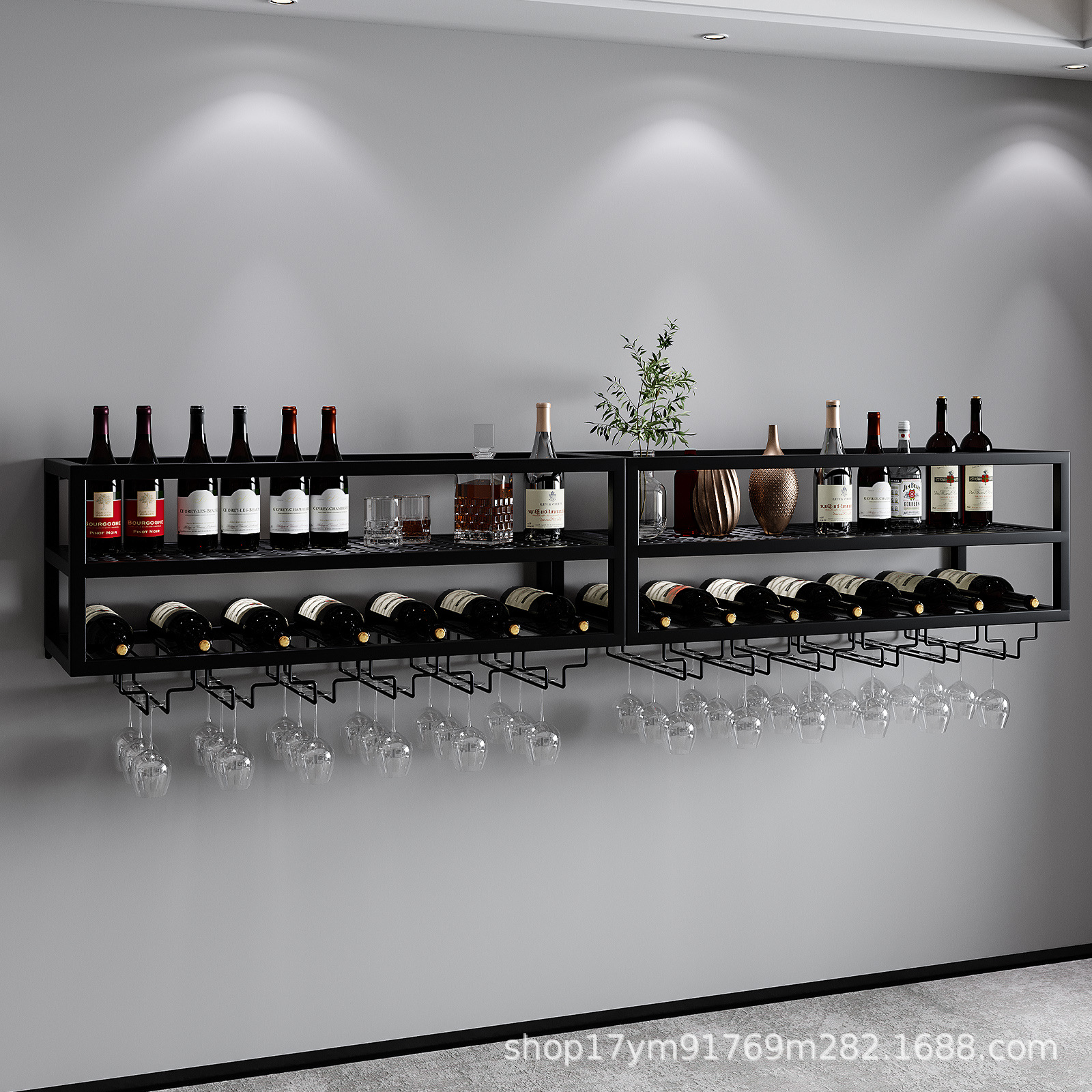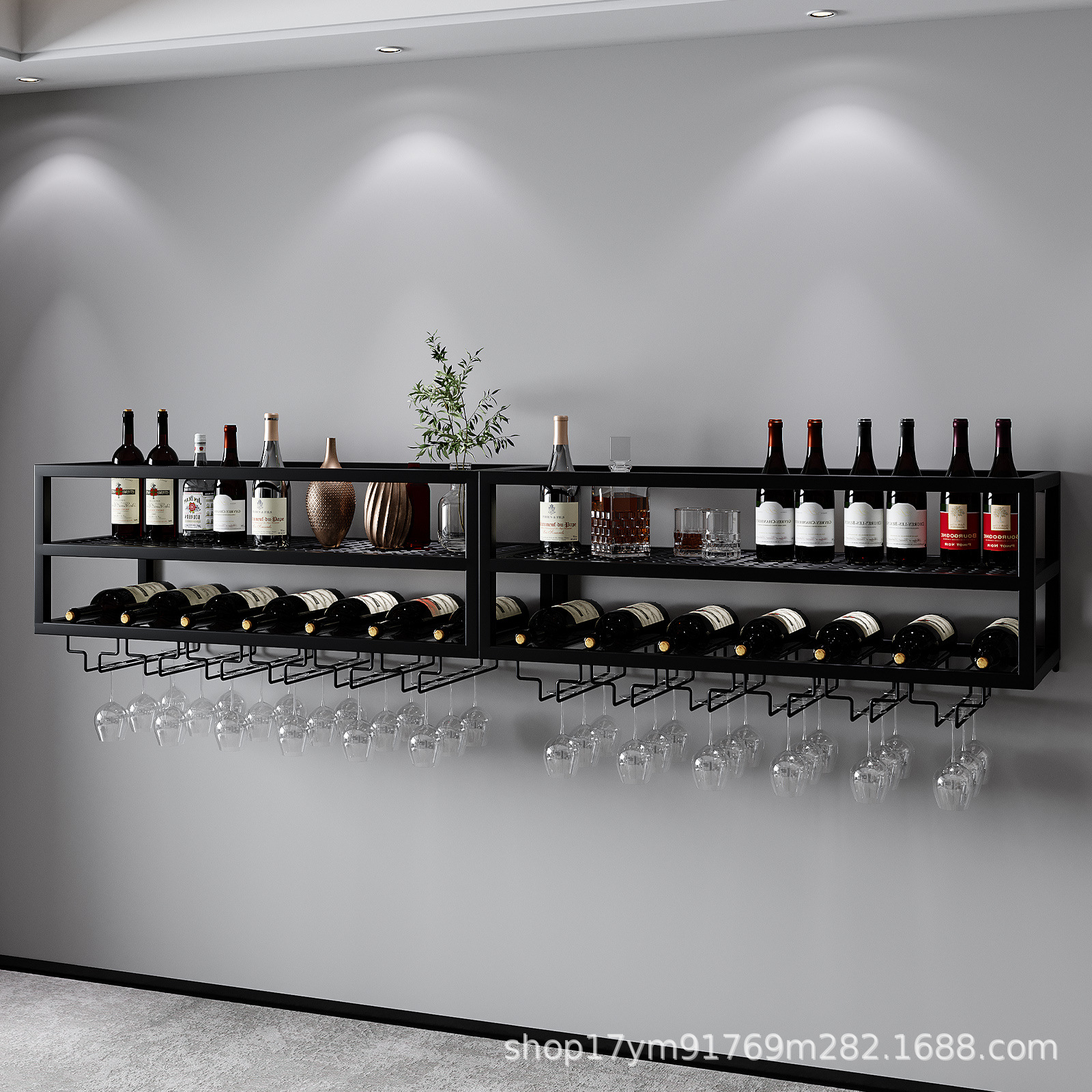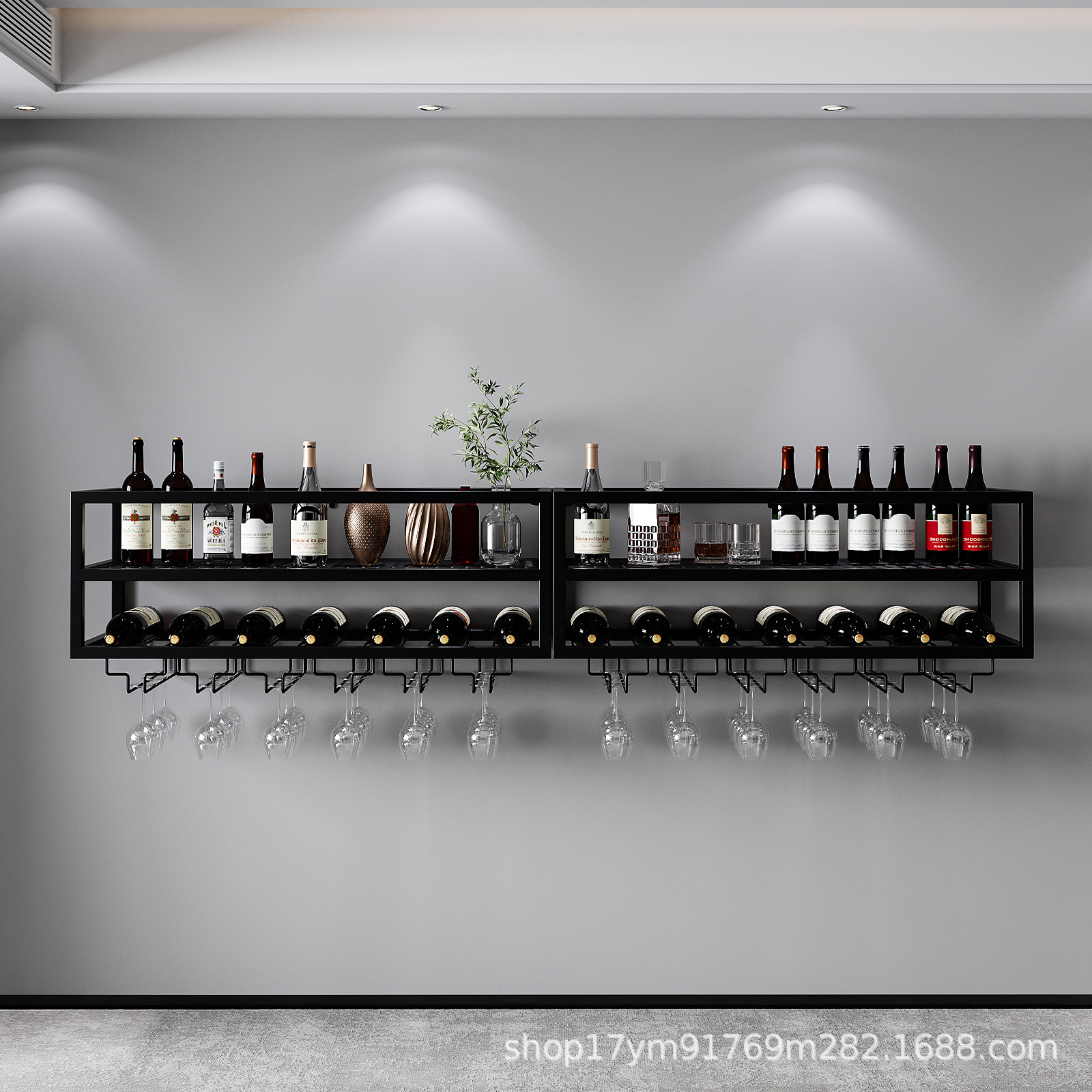 와인 랙 벽걸이형, 산업용 금속 벽 와인 랙 및 유리 랙, 대형 플로팅 선반 와인 병 보관 디스플레이 랙스토어 가기