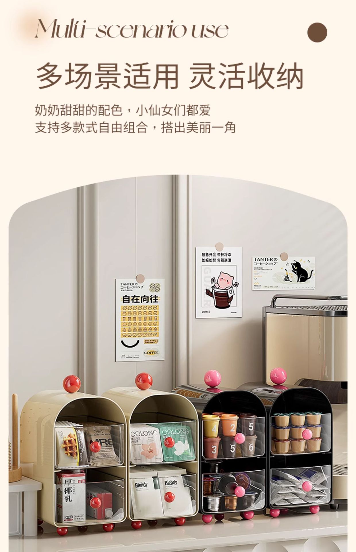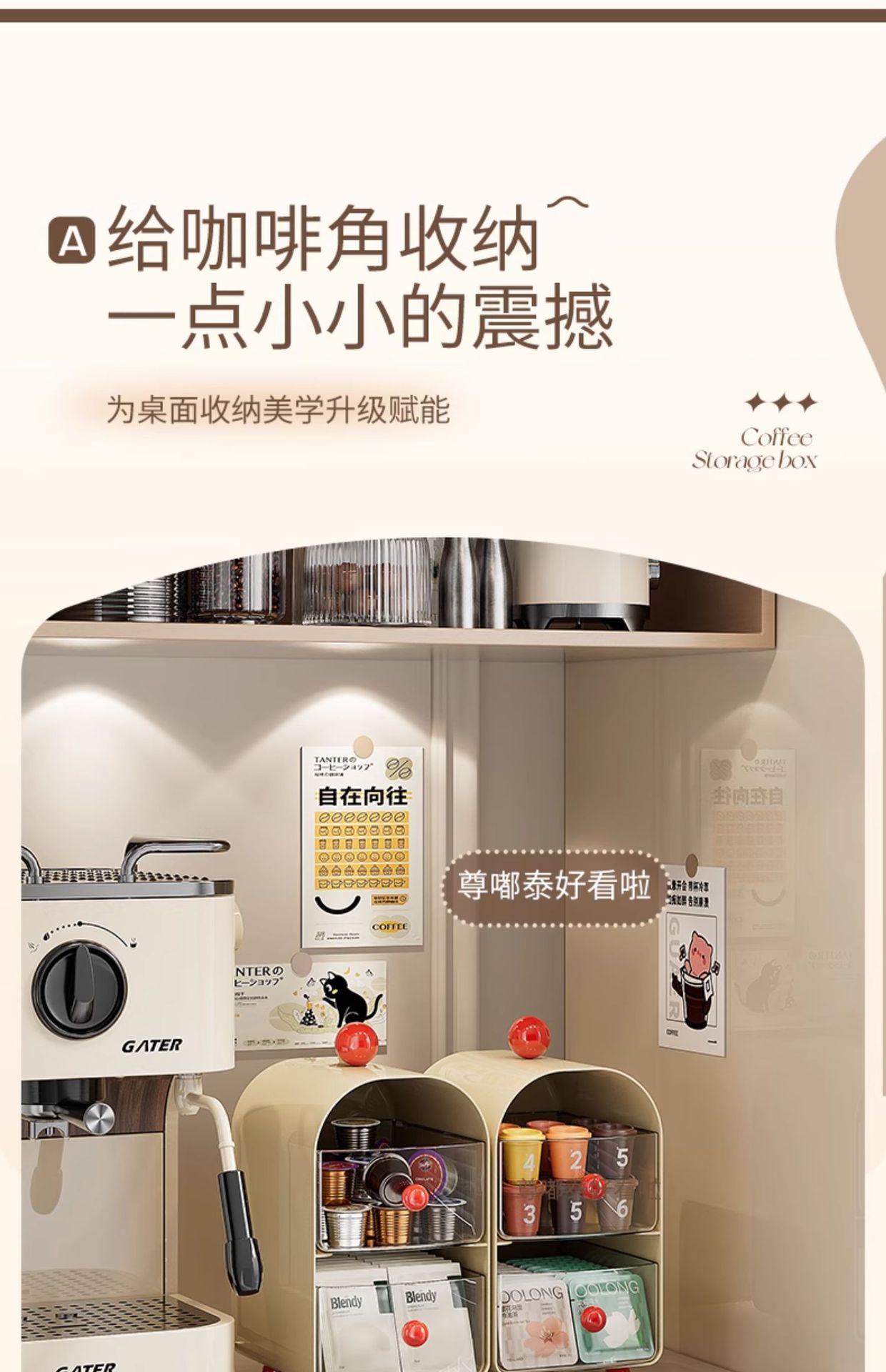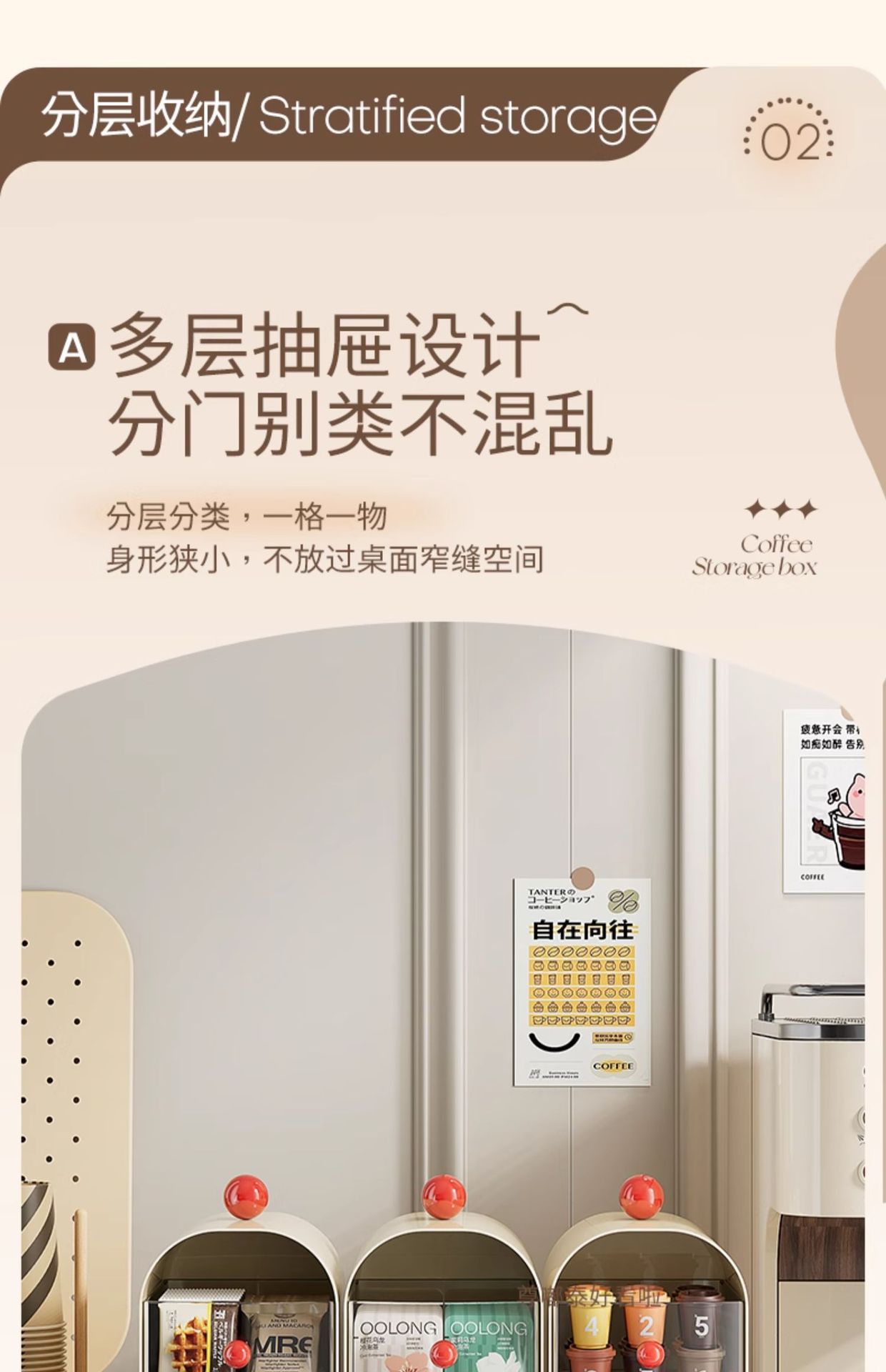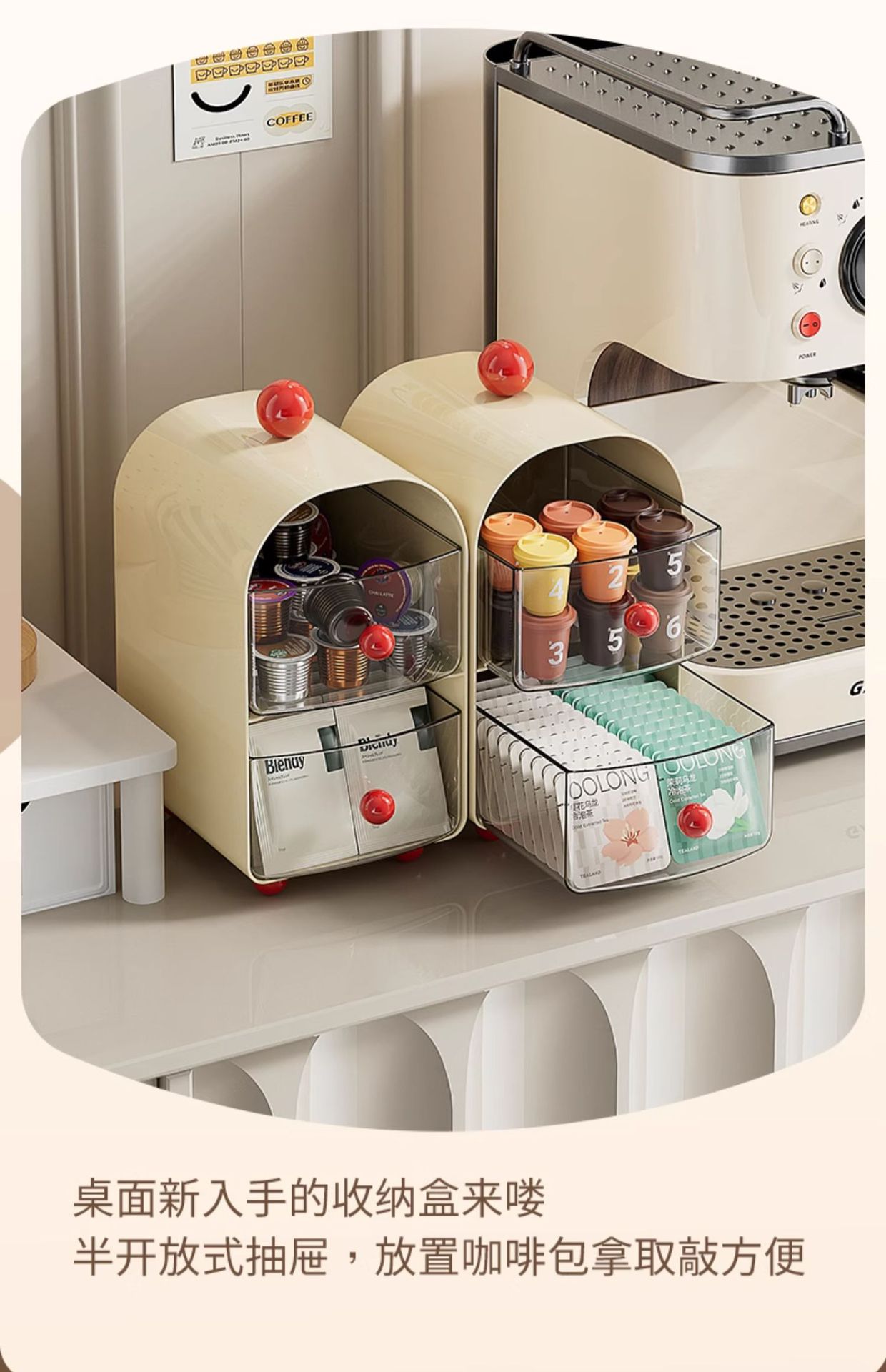 커피 코너 데스크탑 티백 보관함 서랍형 사무실 티룸 식탁 보관함 캡슐 커피 보관함스토어 가기