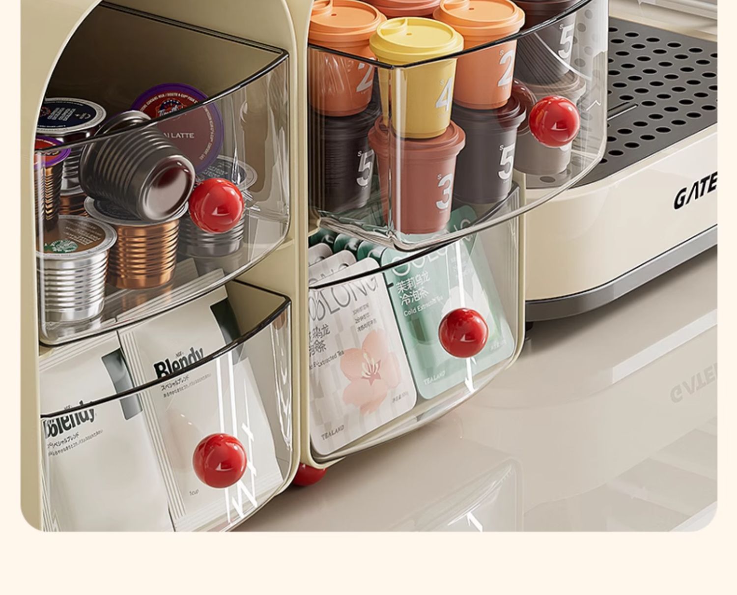 커피 코너 데스크탑 티백 보관함 서랍형 사무실 티룸 식탁 보관함 캡슐 커피 보관함
