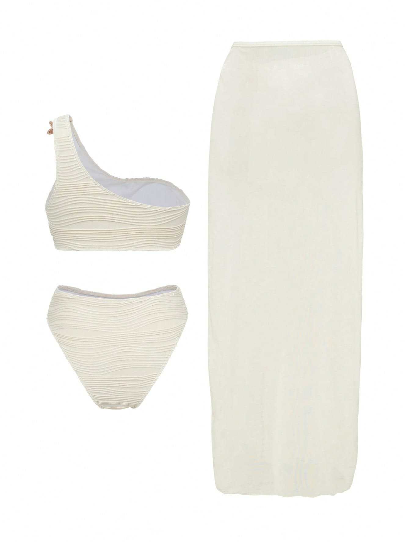 국경 간 대외 무역 비키니 새로운 유럽과 미국 스타일의 원 숄더 섹시한 3 피스 스플릿 롱 스커트 수영복 여성 비치 슈트