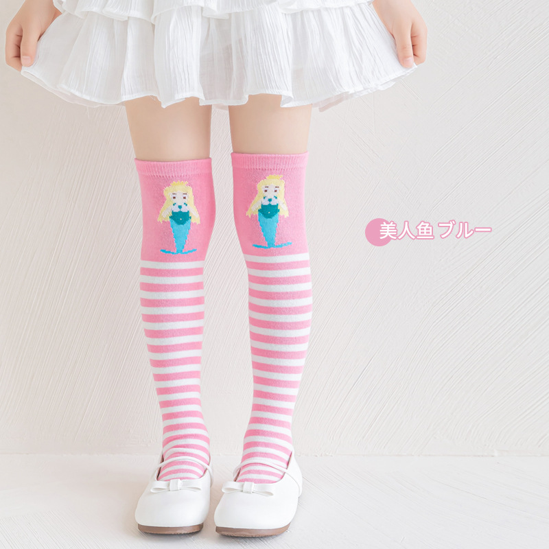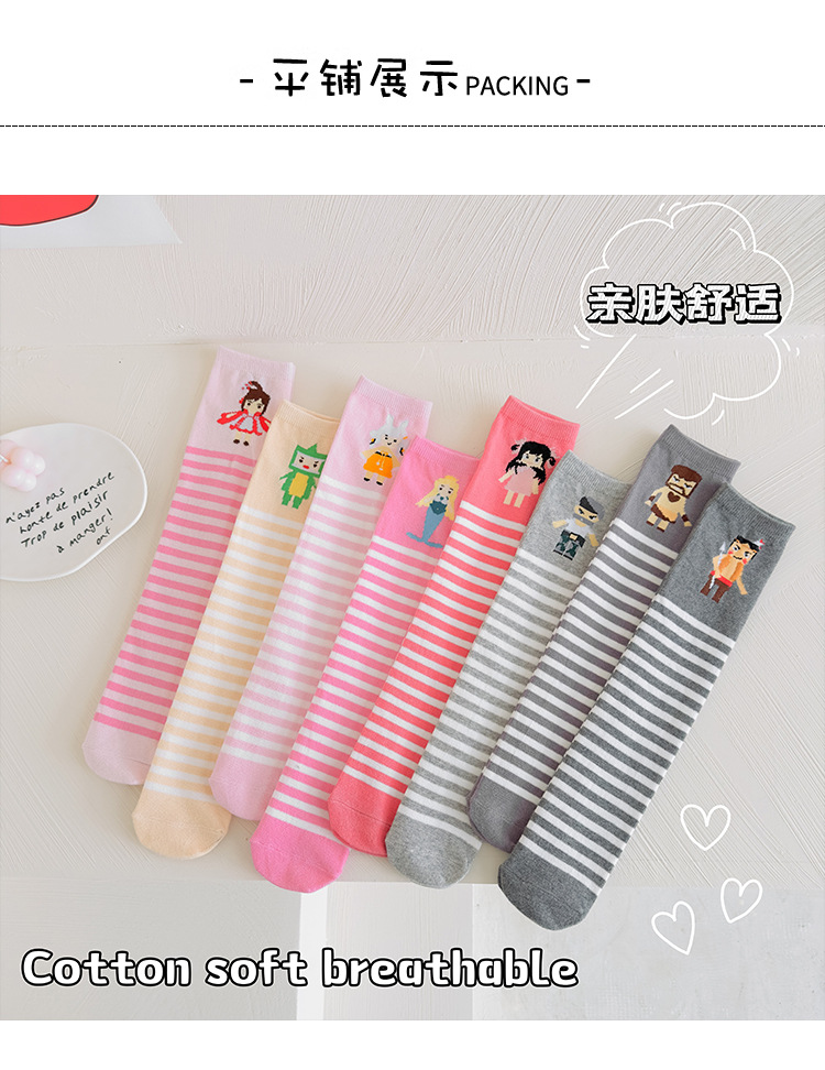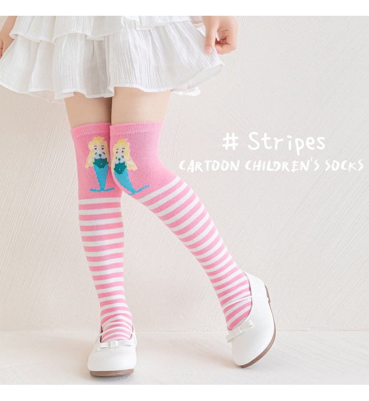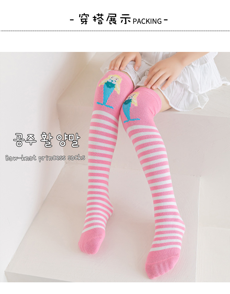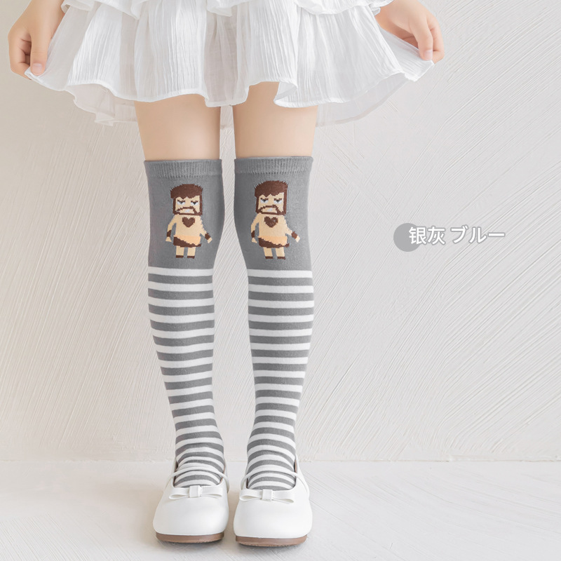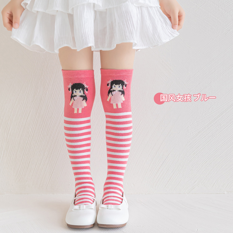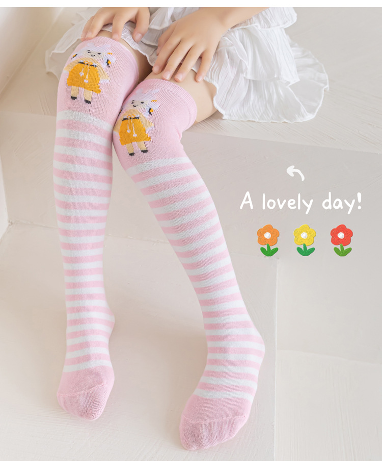 2024 가을, 겨울 어린이 스타킹 만화 아기 중간 스타킹 만화 줄무늬면 양말 무릎 위 양말 Zhuji Factory