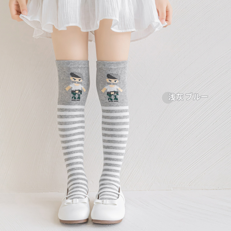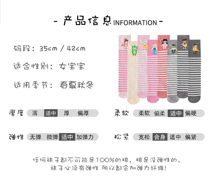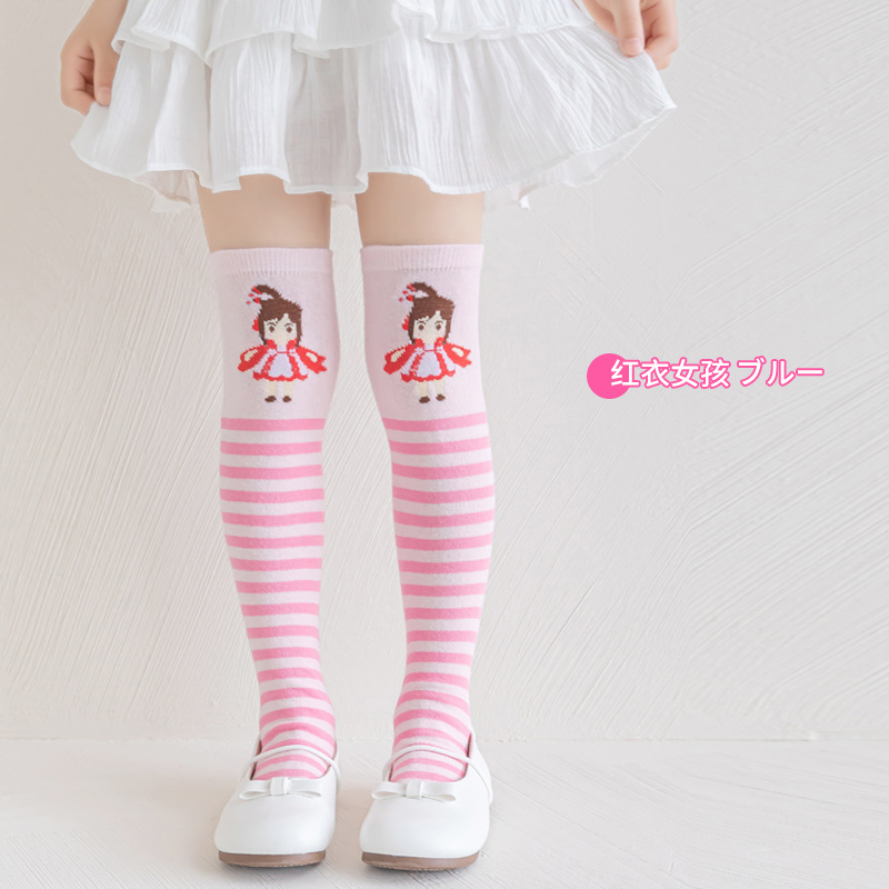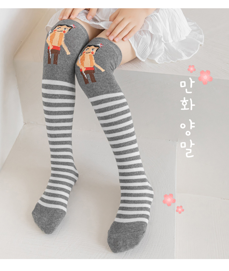 2024 가을, 겨울 어린이 스타킹 만화 아기 중간 스타킹 만화 줄무늬면 양말 무릎 위 양말 Zhuji Factory스토어 가기